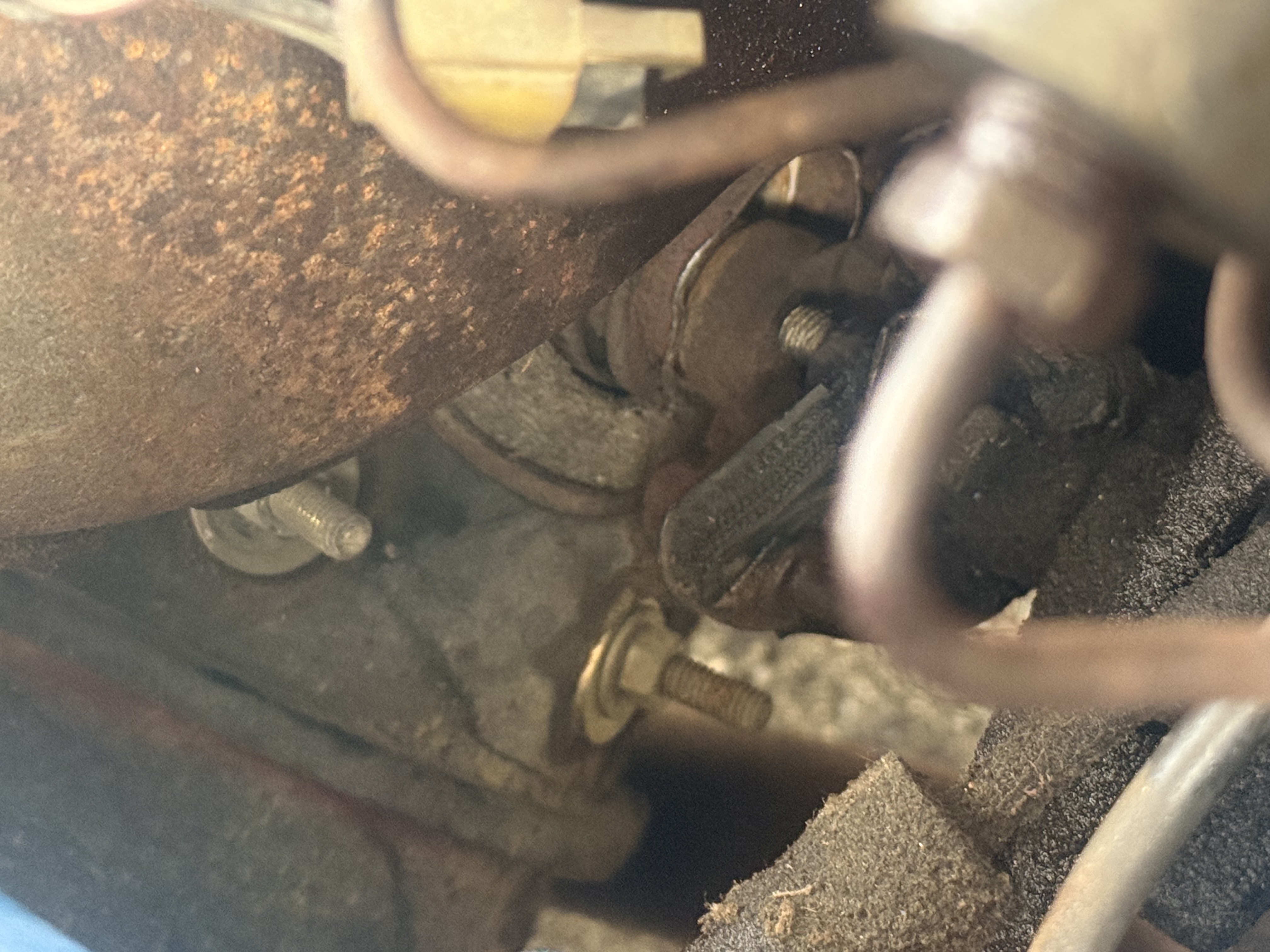 What exactly am I looking at here? I know the rag joint is toast, but why is the input shaft crooked? Is there a hold down/bearing near the firewall, or is the rag joint the only thing that holds it straight? 69 t-bird. Hopefully the box isn’t toast, heard a grind when turning and immediately parked it.