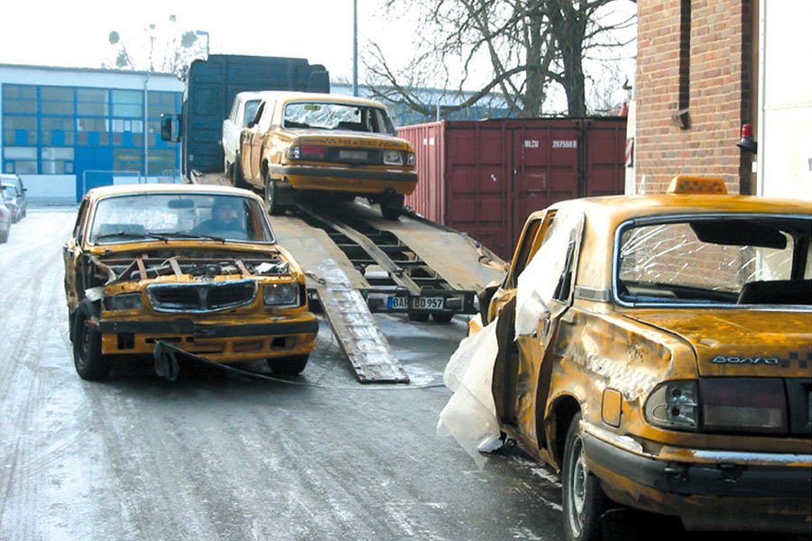 in the movies they used to buy actual normal cars just to destroy them, like the OP pic, it shows a bunch of volgas that crew behind the film "bourne supremacy" destroyed just for the chase scene in the movie