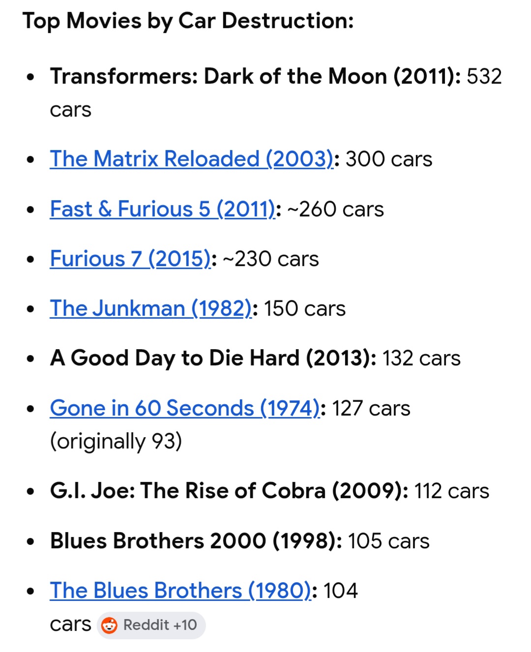 >nooo!!! you didnt link each movie to its official website that quoted how many cars were destroyed during filming!!!!