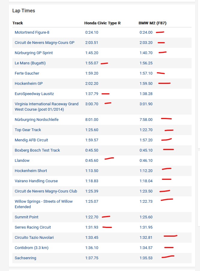 >>28906619>>28907365Right, I don't think the other guy is denying that, but looking at how close those numbers are seriously makes me not want an M2. How is it an M, fucking M, 2 when a Civic with 200 less horsepower is a second or two slower at most. That basically tells me there is 0 difference outside of highway pulls / drag and I also know that most amateurs can't get on/off power on small tracks so for a low-end professional driver, there is even less difference. BMW honestly blown the fuck out.