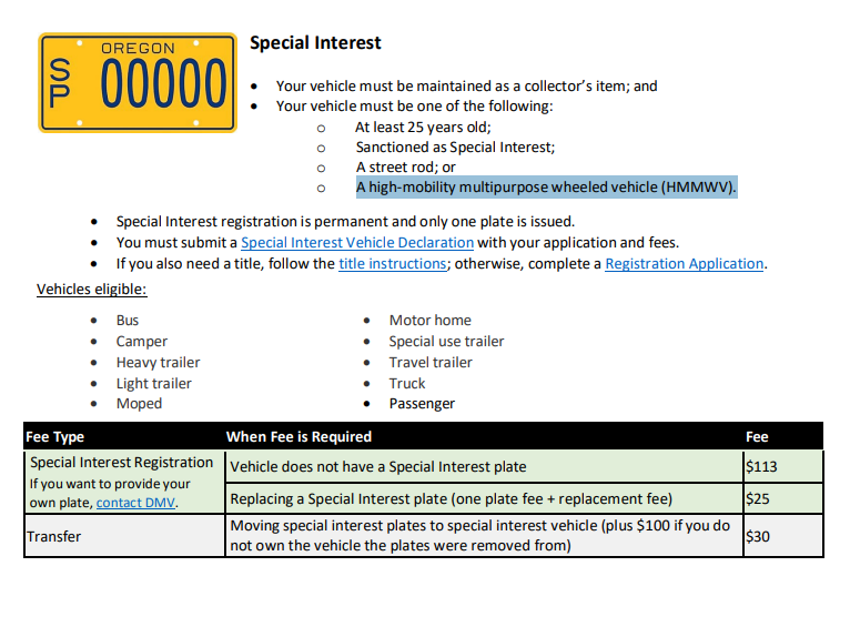 >>28910066The registration thing depends a lot on your state. Oregon actually specifically lists them as one of the applications for their "Special Interest" license plates.