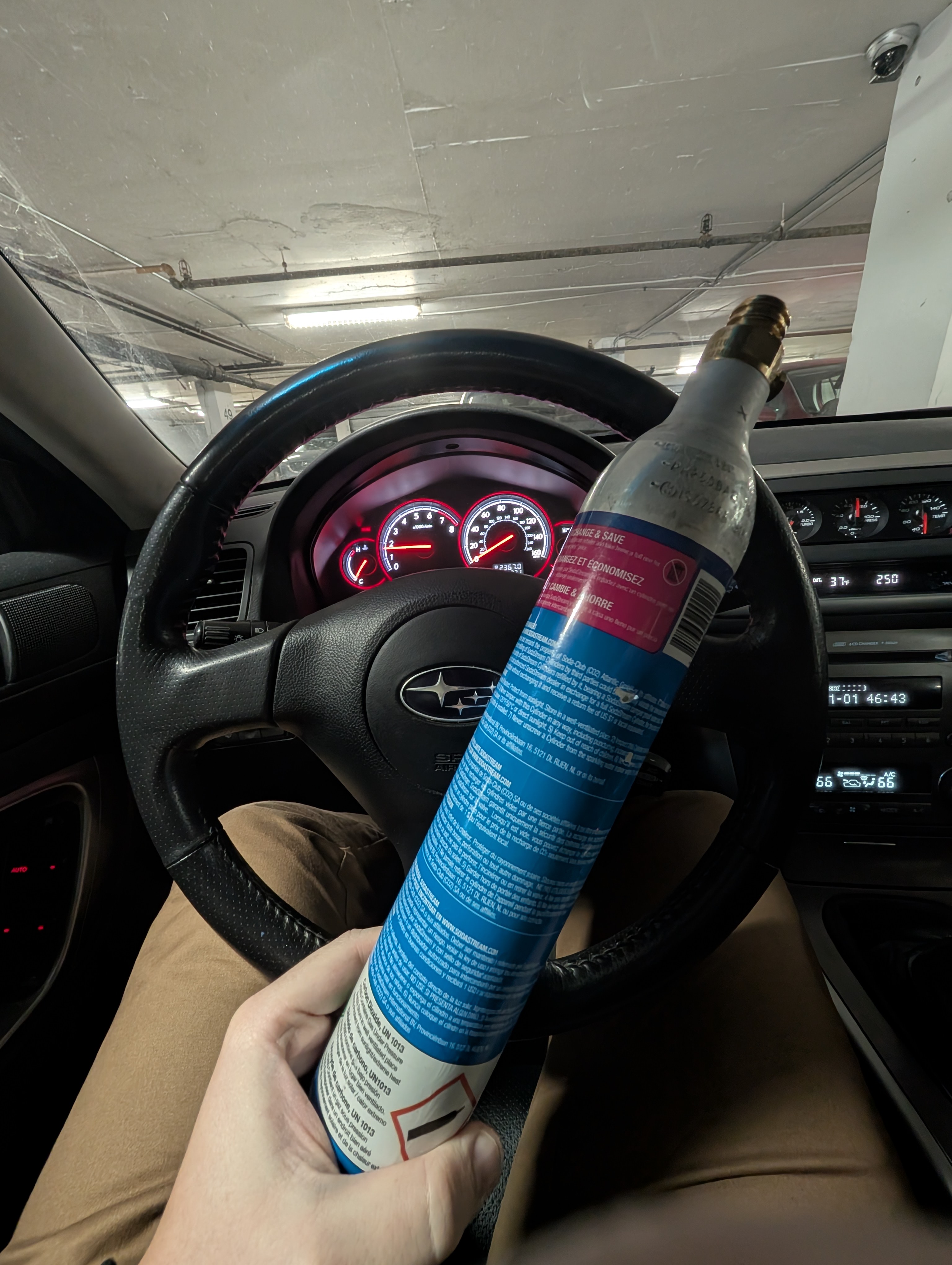 What are you doing with that soda stream Co2 cartridge in your car?