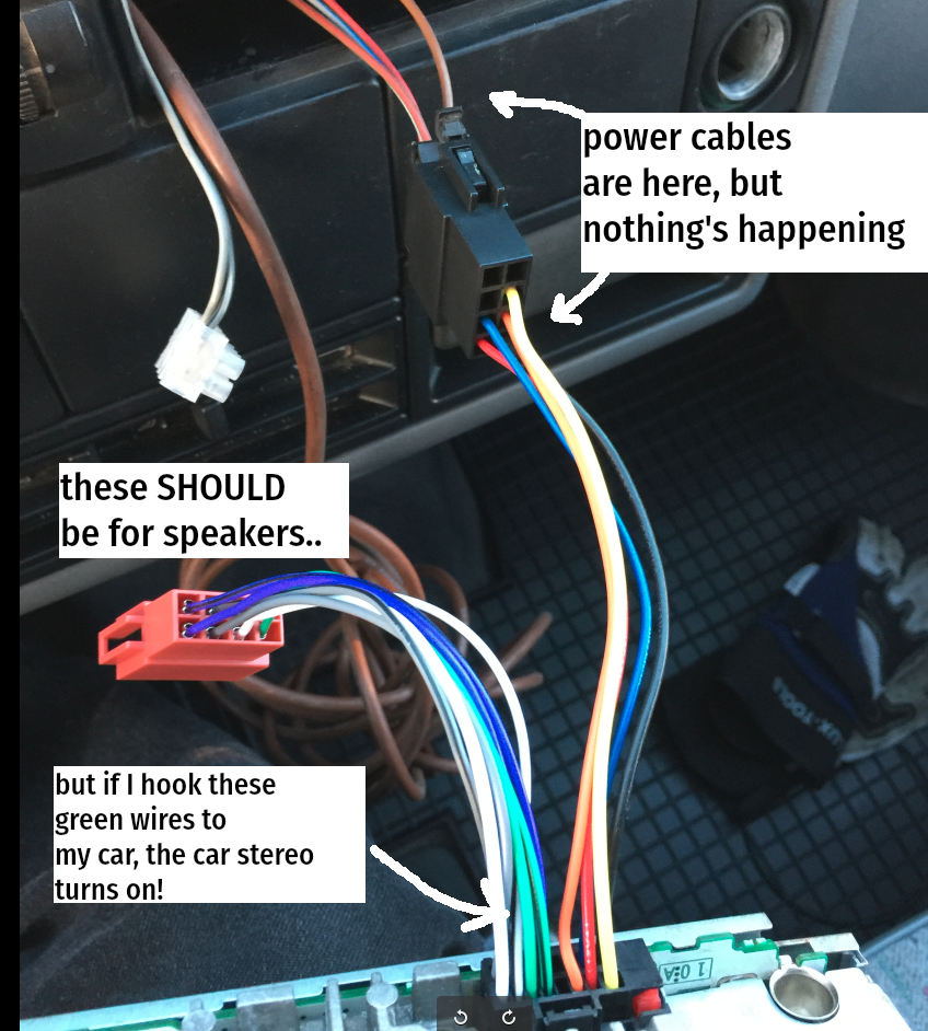 Naturally, the wiring's a mess and there is no pinout guide for the Pioneer anywhere.
