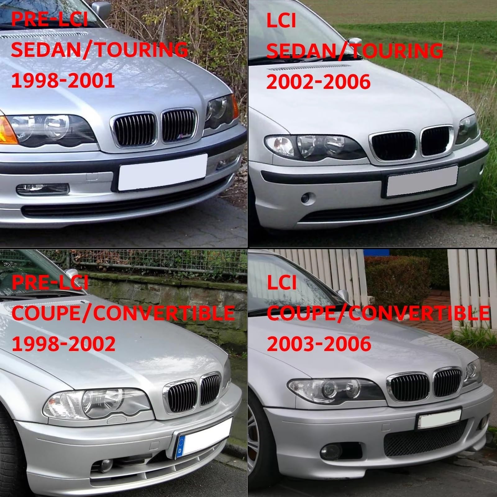 post of early to mid 2000s BMWs imothe pre lci all had front facias with headlights and hoods matching the rest of the car, but the facelift tried to make them all more modern by smoothing everything out, so you end up with sharp geometric shapes that have weird smooth headlights and bumpersbest example would be the e46 coupes pre lci and lci