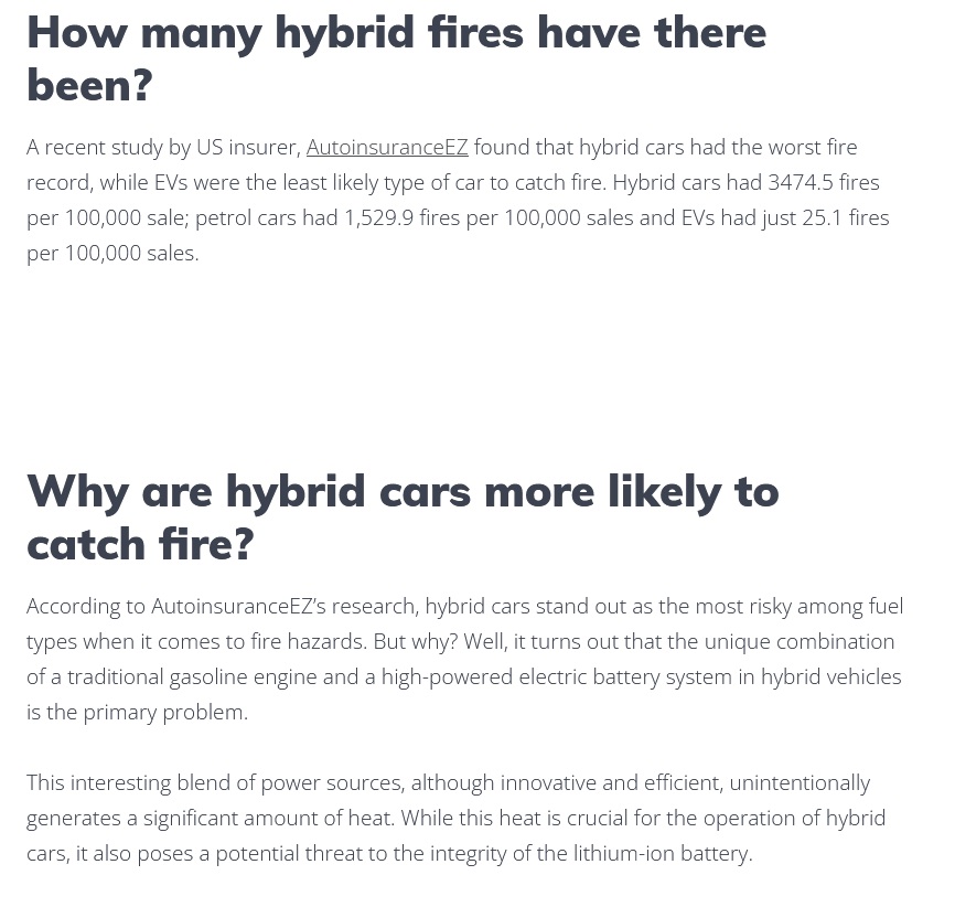 Experts believe the heightened death rate could be down to the combination of petrol engines, batteries and electric motors, which make them more prone to fires.