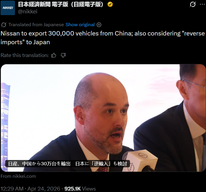 >>28926295Worrying for sure. Japan's auto brands are either partnering with Chinese ones or shifting production there to reimport, which is cheaper even factoring in shipping. Japan has no import tariffs on automobiles.
