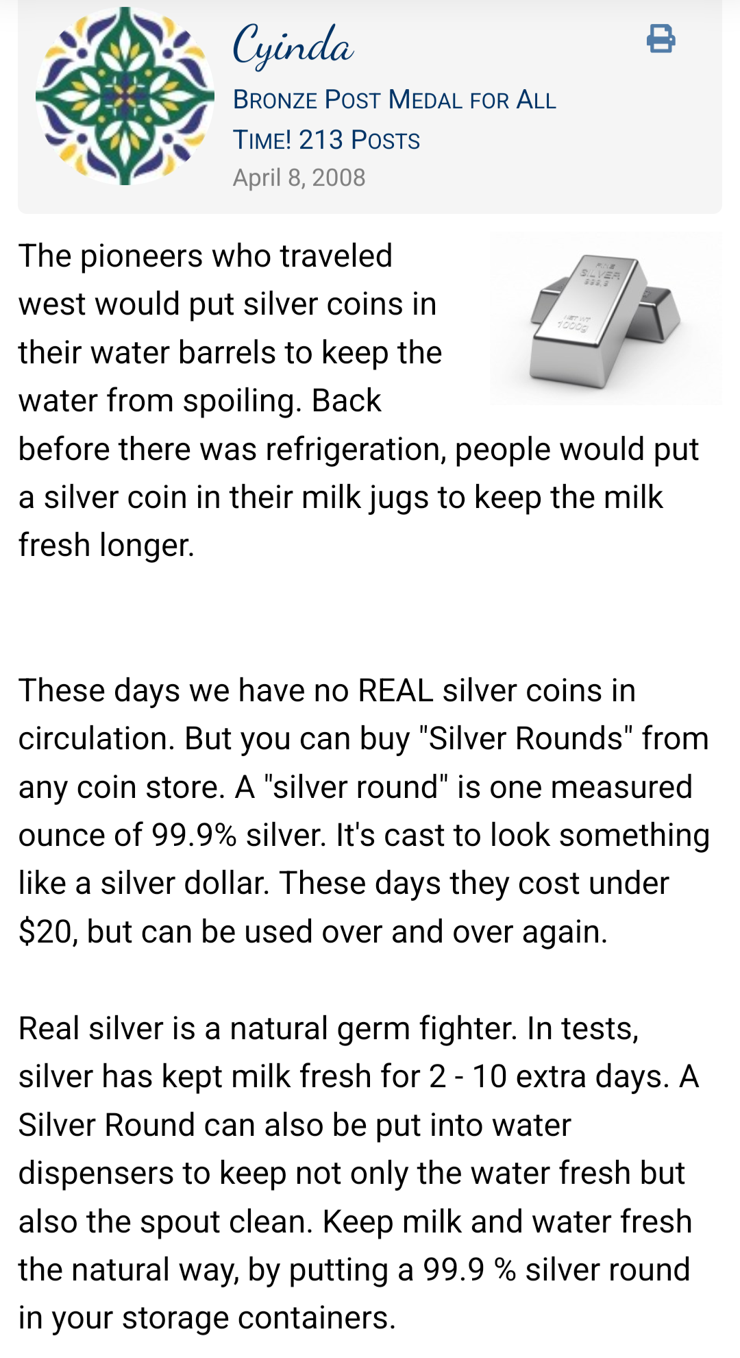 Why not drop a silver coin in your water instead of using bleach?