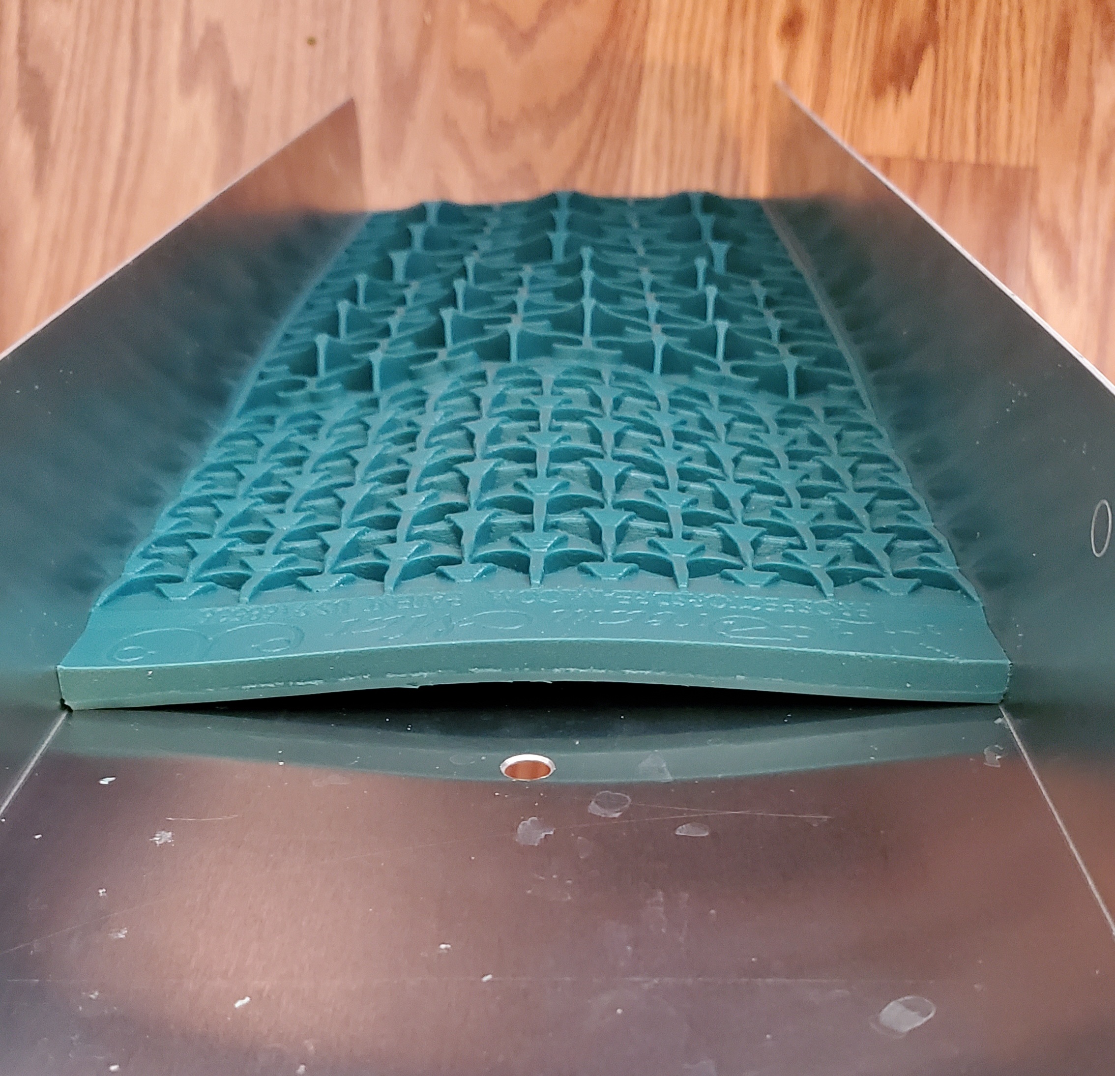Does anyone here have the 6x24 trek dream sluice? I just bought one and the mat is not sitting flat in the sluice body. It's got a bump/hump in the middle, like the mat is a little too big for the sluice body. How do I fix this? Shave off a little of the mat along the outside edge? Try and stretch out the sluice body a little? This is my first sluice, and I don't see anyone talking about it in the reviews. So I'm at a little bit of a loss as to what to do.