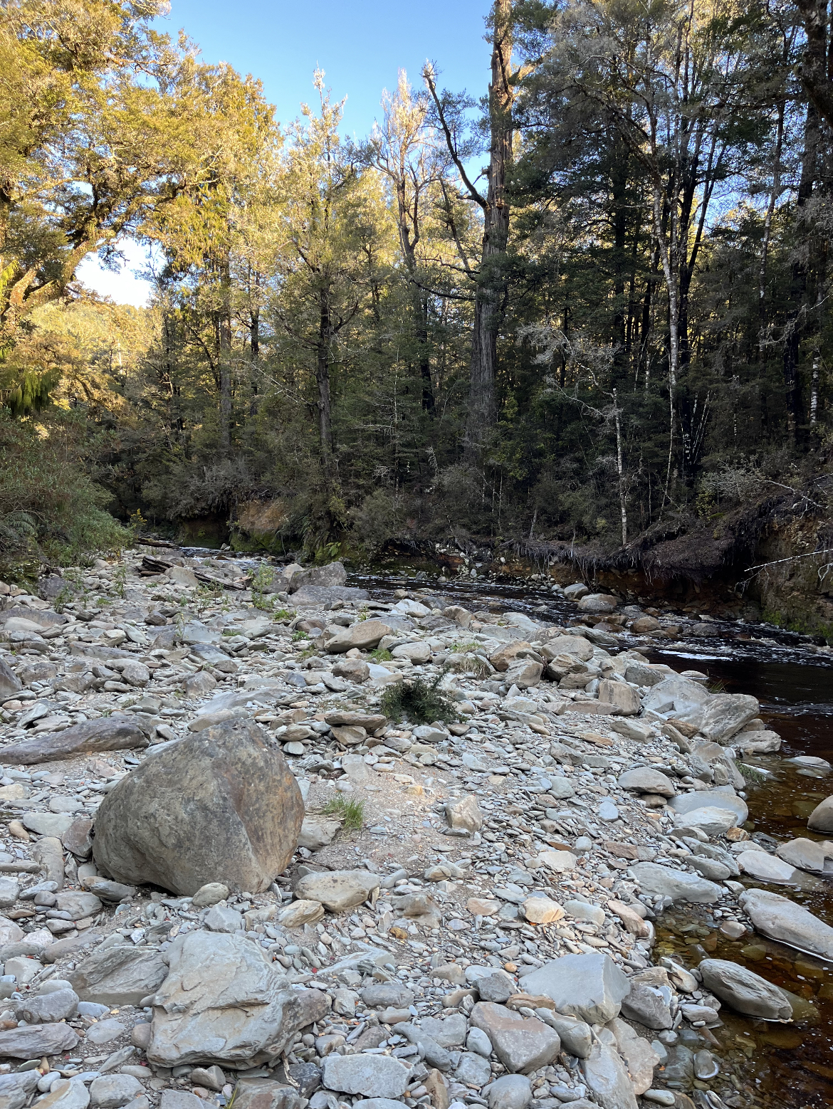 >>2834077It's a spot on a river that was worked for gold 150 years ago and I'm guessing that over the years floods have uncovered a shelf of bedrock that was covered by metres of gravel when the old timers were there, so it wasn't worth their while shifting it all. The perfect bedrock is soft and rotten so gold can sink down into the cracks and gets stuck then it's fairly easy to break up and sieve into your pan.There's about 2.5g in the pan, the stuff on the scales is from a different day.