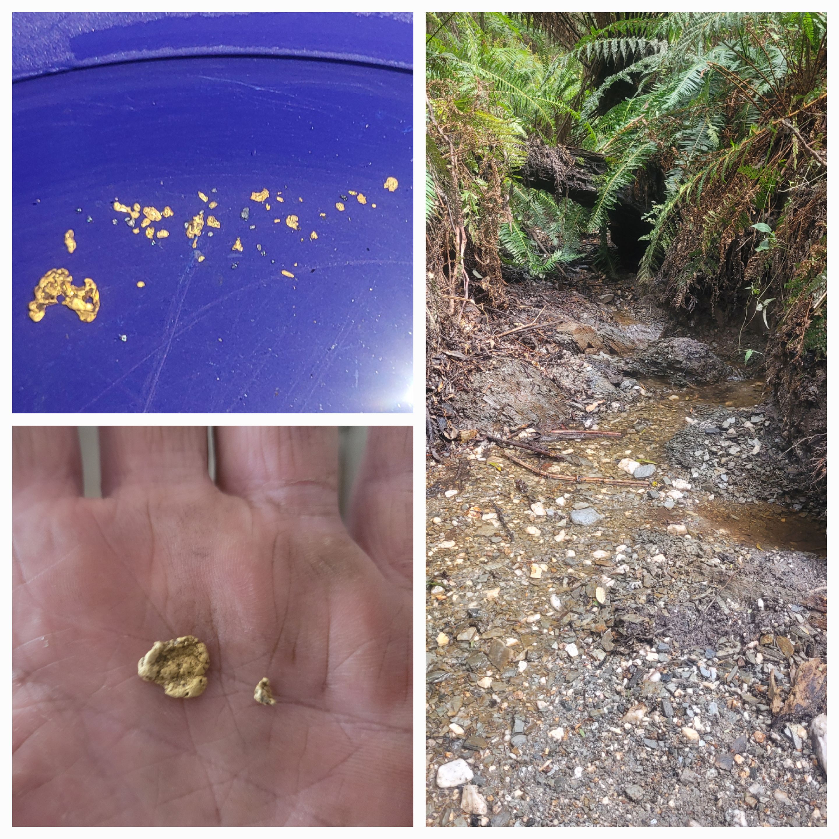 remember to keep an eye out for where different types of rock meet in your local creeks. a good quartz vein running across the bottom can be an excellent gold trap, heavy material cant pass it until it weathers away.