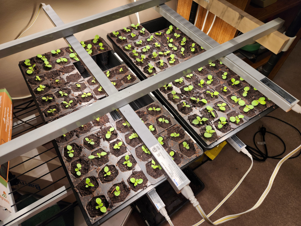 Moved my petunias from the open germination tray to individual cells. A few varieties didn't germinate well so I started more of those which are a week or two behind.