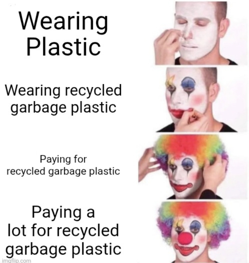 Ya really. Yes it's retarded. Producing plastic is environmentally harmless (and could even be done from biological ethanol). Disposing of it is. I have to wonder whether the effort of transforming recycled polyester into jackets instead of just burning it isn't even more harmful than just producing it new.