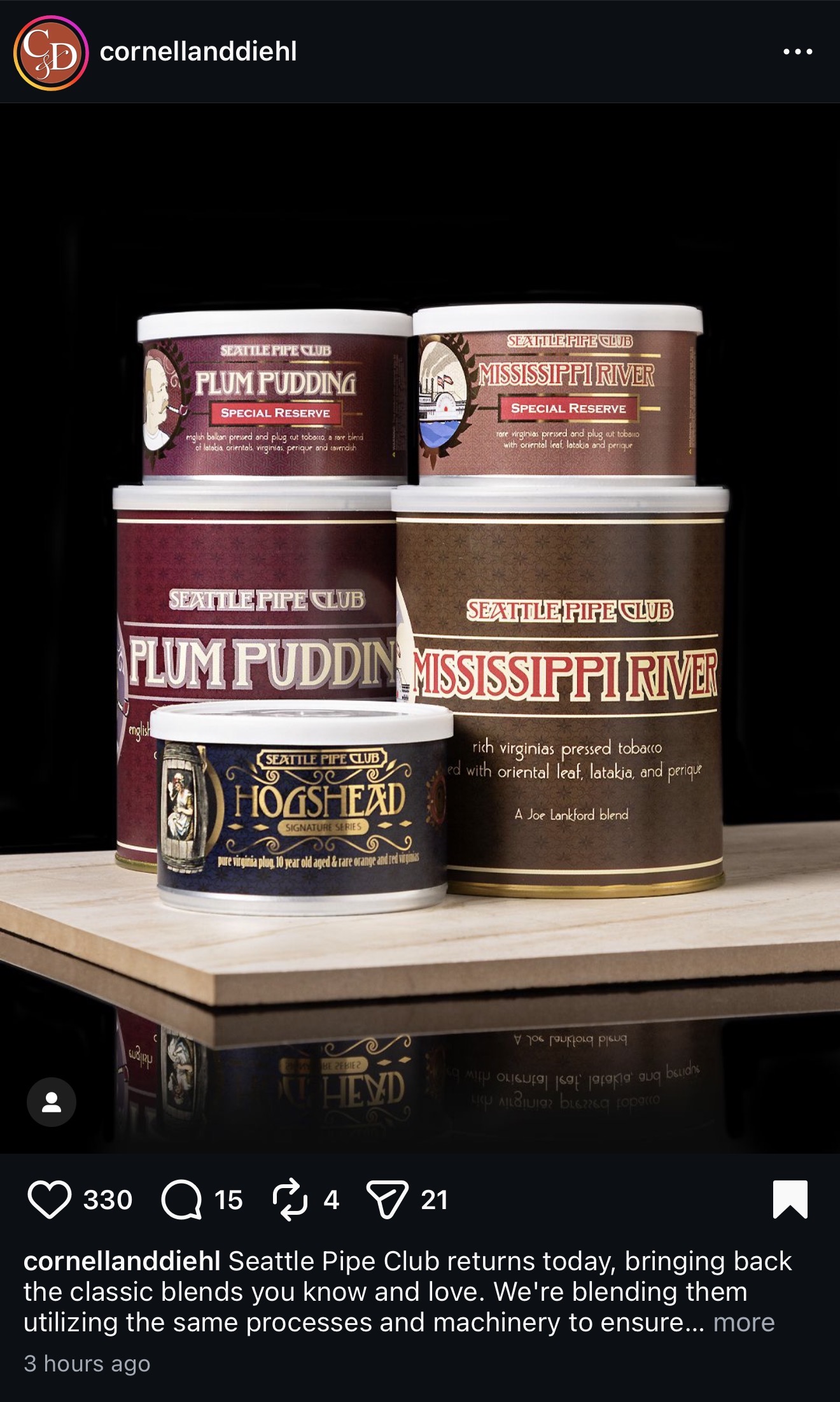 SEATTLE PIPE CLUB IS BACK!!! I had heard that C&D was out of the picture as far as acquiring SPC, but I always felt that C&D would do the best job with SPC. Looks like they thought so too. I’m interested in trying the new C&D stuff, since I know that it will taste a bit different, but that doesn’t necessarily mean it’s a bad thing, especially since I felt Plum Pudding was becoming less flavorful than it had been 4+ years ago.