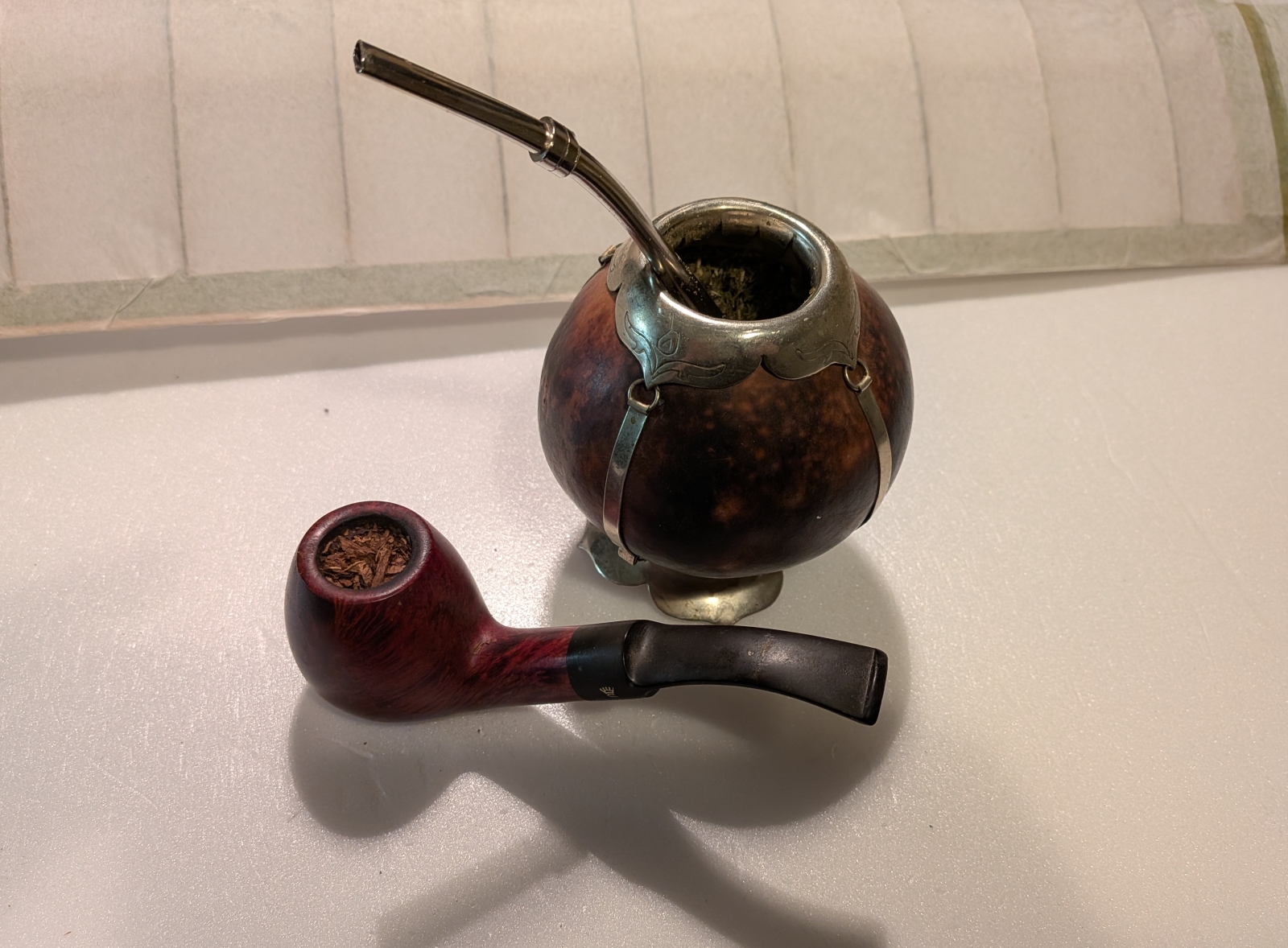 >>2858835I remember paying 10 Swiss francs per 50g tin some years ago if that helps. I guess it really is hard to get when you're not in my neck of the woods.>>2858827What a lovely pipe. Seeing that gourd made me think of my mate calabash, so tonight I'm gonna find out if yerba mate pairs well with a pipe.