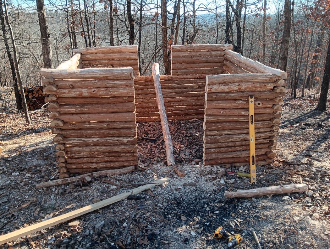 >>2857640i nailed it together with big 6" ring shank nails, 7lbs of them so far. it is very sturdy, you could hit it with a car and it would barely move. i am putting a couple rows of full logs over the door opening and wil frame in the door with regular 2x4's which will tie it together. plus the rafters for the roof will help hold it plumb. >>2857638there is a very good chance i was building houses before you were born