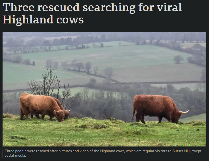 Could (you) manage to climb a slightly muddy hill without needing rescue?>Social media posts often show the Highland cows and panoramic views, but rarely reflect the physical effort or preparation required to reach them.https://www.bbc.co.uk/news/articles/cjrz972lg84o