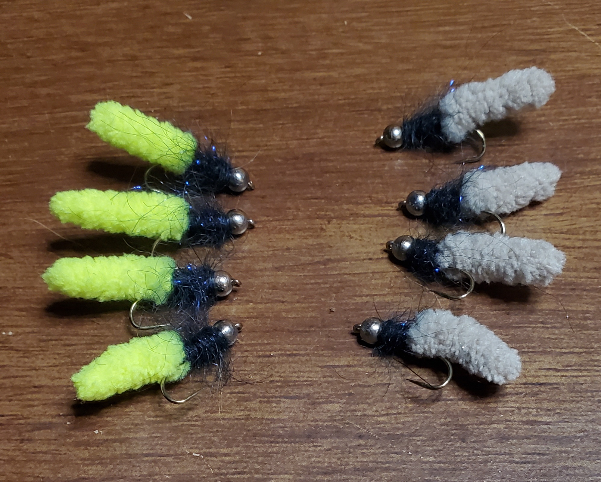 >>2861435Oh, one modification I made on the four on the right, they have 2.8mm tungsten beads from my personal materials. I just bought some size 8 and 10 jig hooks and 4mm slotted tungsten beads to tie up some mini/euro buggers. I'll tie those up in a couple days.