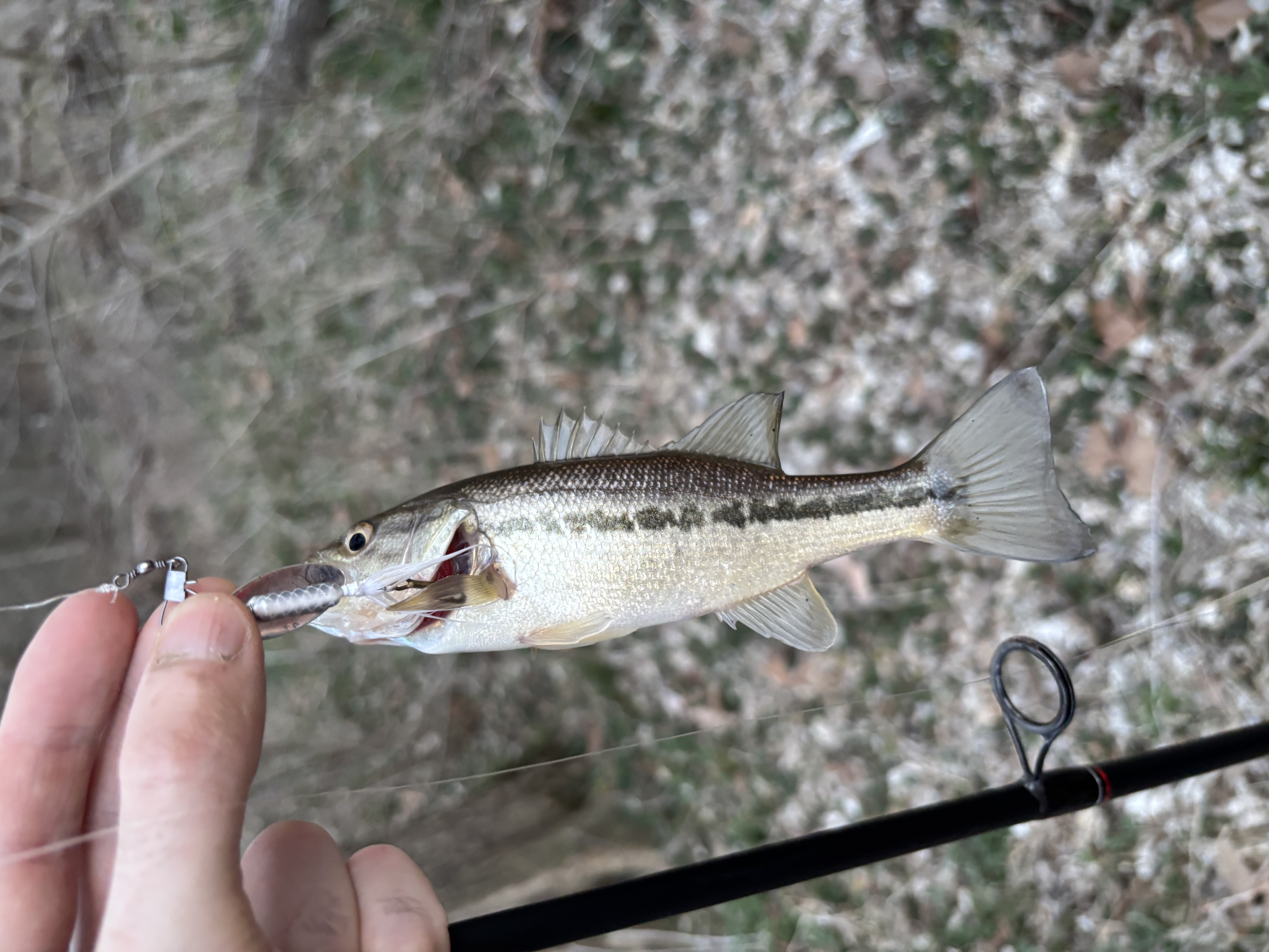 Went fishing for the first time since September, I guess this counts. The river hasn’t done down yet from the rain so it took some challenge to find a spot that looks still but oxygenatedI managed to find a bunch of gar hiding not far from where I snagged this lil guy but I’ll be damned those boys don’t give two shits about any of the bait I had. Granted I’ve never fished or even seen gar but I thought I’d at least try with the spinners I was using. Gonna stop by that spot with some crank and rattle bait next time