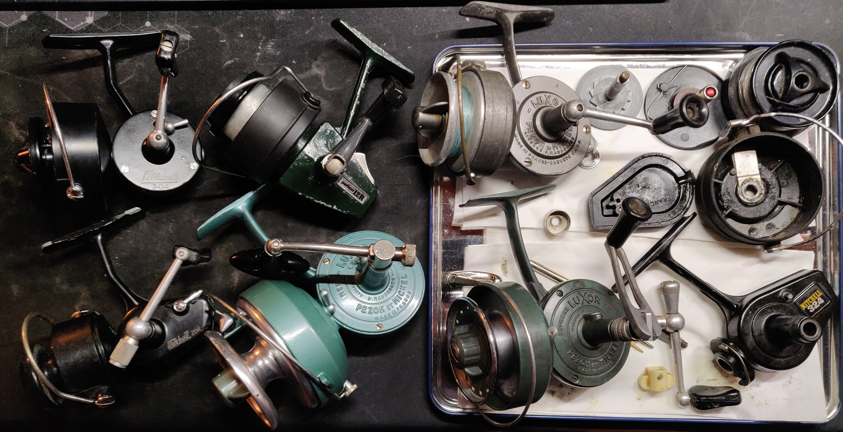 >>2863476here's a bunch of reel i have sitting, the galion12R i did the other day, it's a low cost brand of mitchell (when it was still french and good) very simple and minimalist design but not bad by any mean, and a bunch of mitchells and luxors, the 324 is missing the anti reverse switch because it was a fit in and probably fell off, replacement i found online got a screw to hold it so i assume mine is one of the earliest modelsi got a second luxor model A and a second luxor supreme that are in a drawer taken apart waiting for me to buy some paint cleaner and new paint for them for a full restoration project2/2
