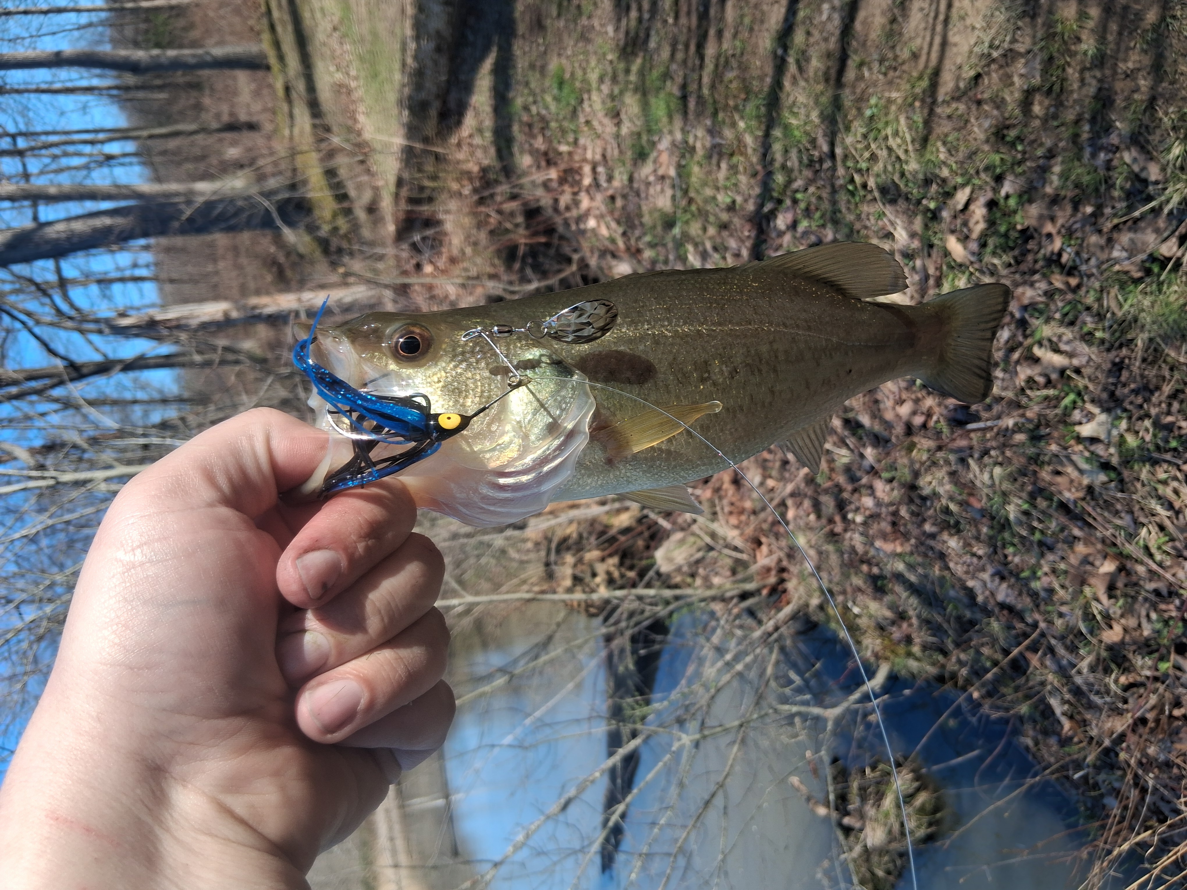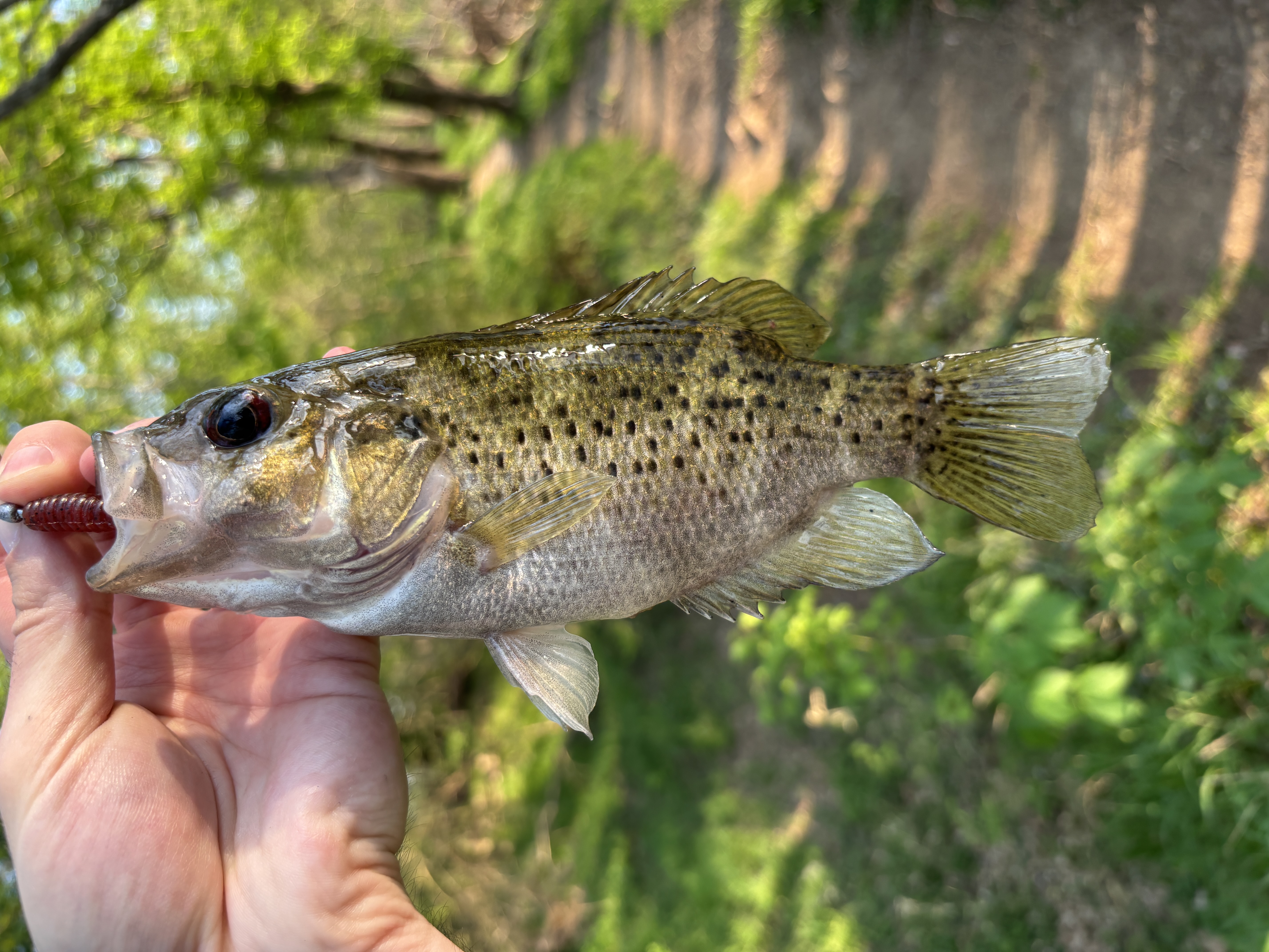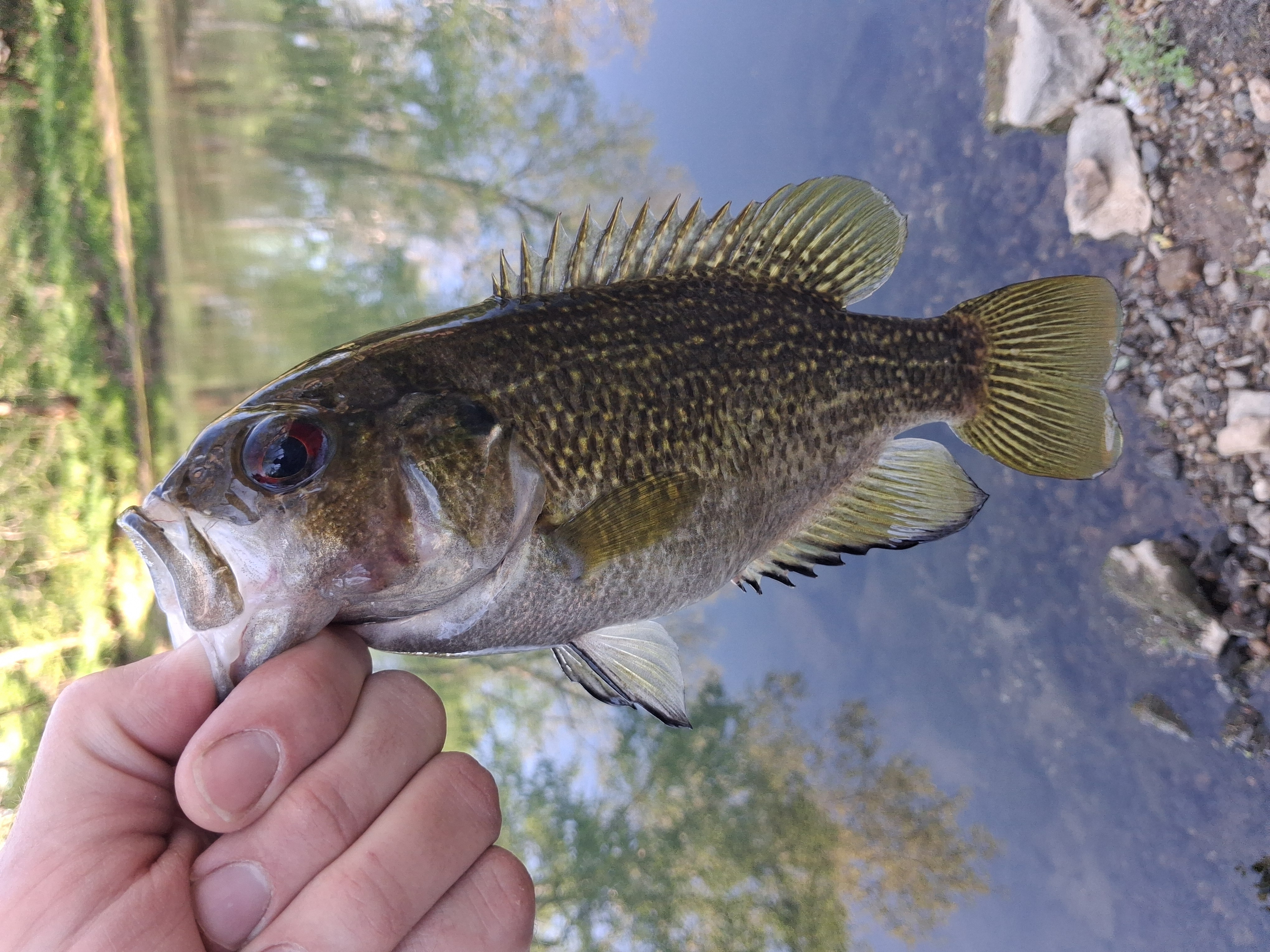 Little Redeye Bass from this evening, just after spawn because after this I caught 5 of his babies, 3-4 inches each or so
