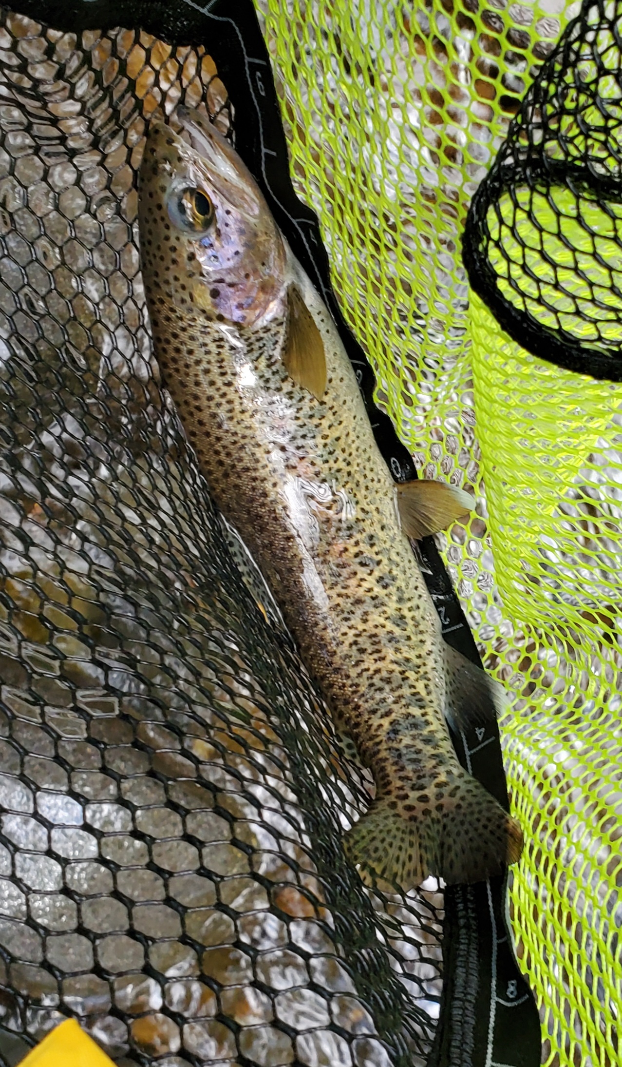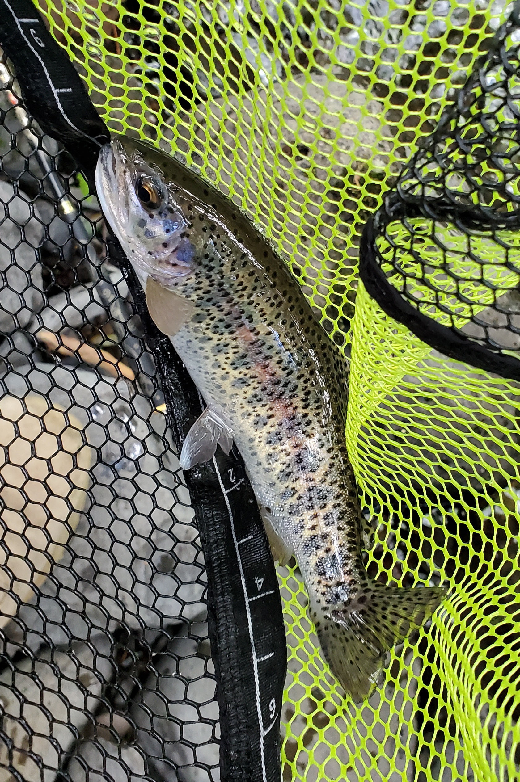 Finally clicked with fly fishing this weekend and it feels good. I've gone a few times and just went with a fly tied on based on a hatch chart and I've gotten lucky a few times but this time I felt like I actually got it all down. It was pretty rough, water was moving way faster than what's typical here, targeted the slowest water I could with a nymph rig. Found some mayfly nymphs and matched my fly to them, and actually got something. Caught a nice size natural rainbow trout. Perfectly clean catch and release. Felt like truly the first time since I picked up fly fishing that I did it all perfectly without pitching flies to the trees and not just throwing something random on and hoping for the best.