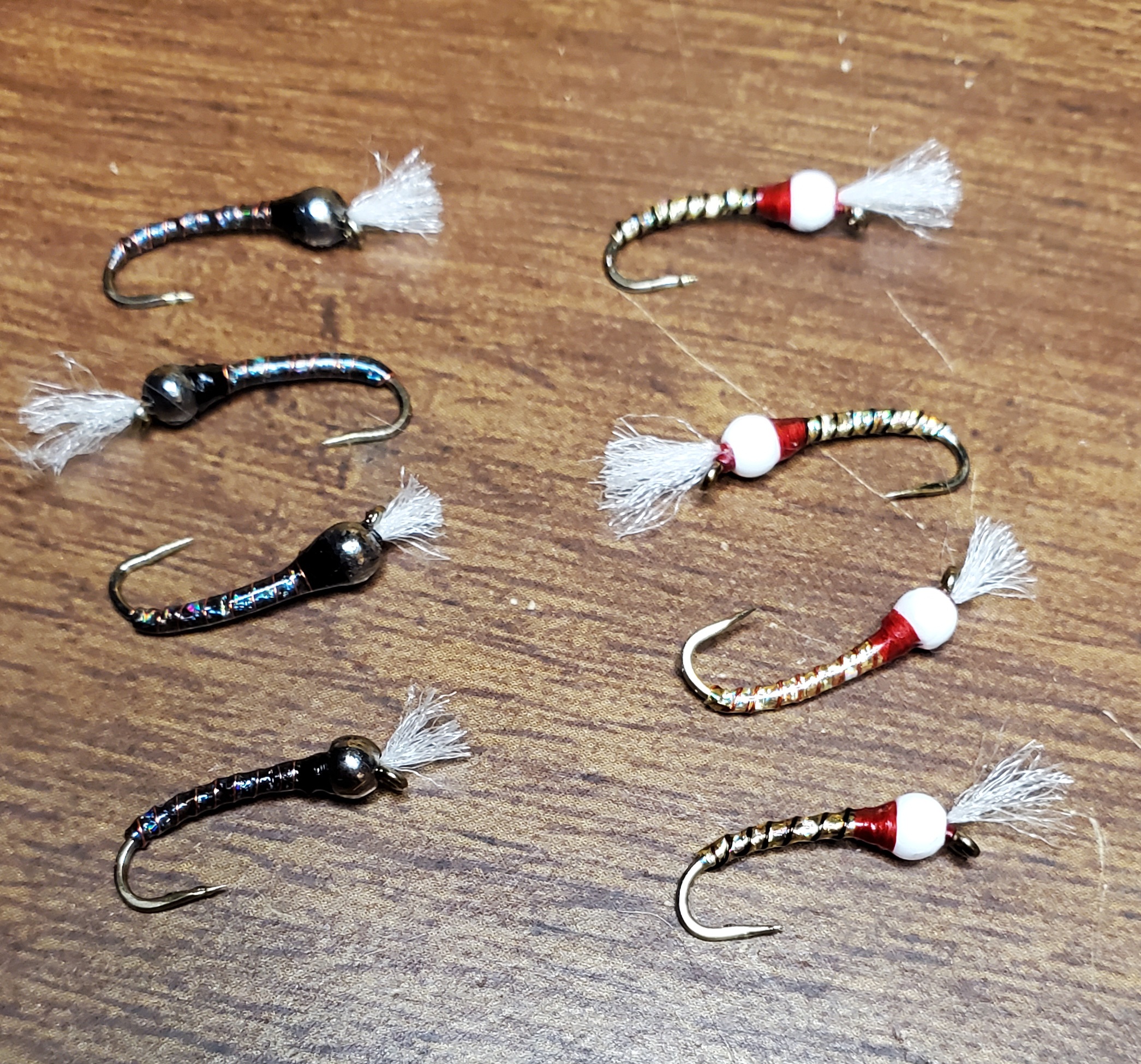 >>2866242These are some tiny flies!! I've only tied a handful of flies on size 20 hooks. I had struggled in the post with tying parachute posts and with locking in the hackle after wrapping it around the post. These gave me some great practice. It was a lot easier this time. I also had a very hard time whip finishing around the post last time I tried a parachute pattern. My ability and technique has definitely improved since then and I found it fairly easy now. It's nice seeing that my practice has been paying off. Overall, a pretty fun pattern to tie. And I'm glad that I no longer need to fear the parachute post :)