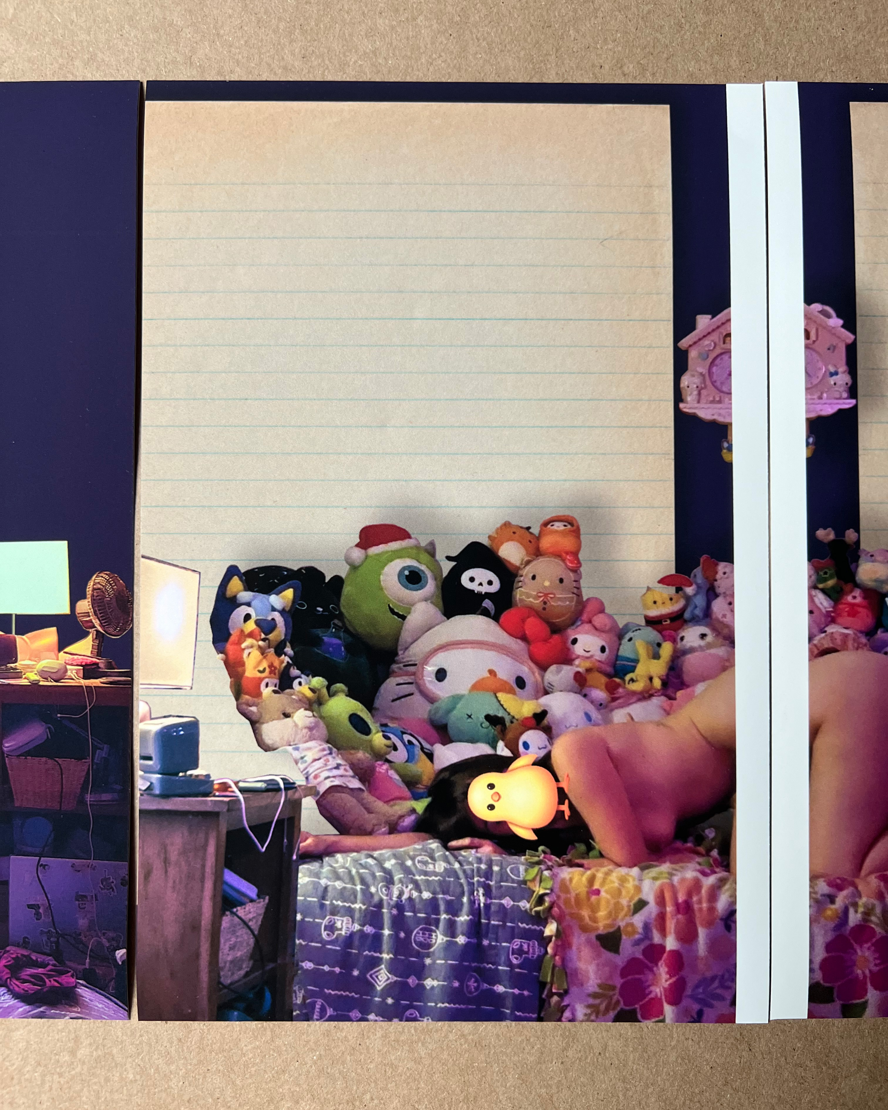 >>4486970Page 4 (verso) - bed spreadThe idea is to let the viewer pan around her room in 360 degrees as they turn the pages