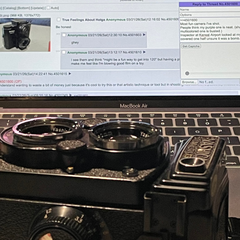 >>4501600Most fun camera I've shot.People think my purple one is neat. (shame my multicolored one is busted.)Inspector at Kansai Airport looked at my tape covered one half unsure it was a bomb.pic unrelated