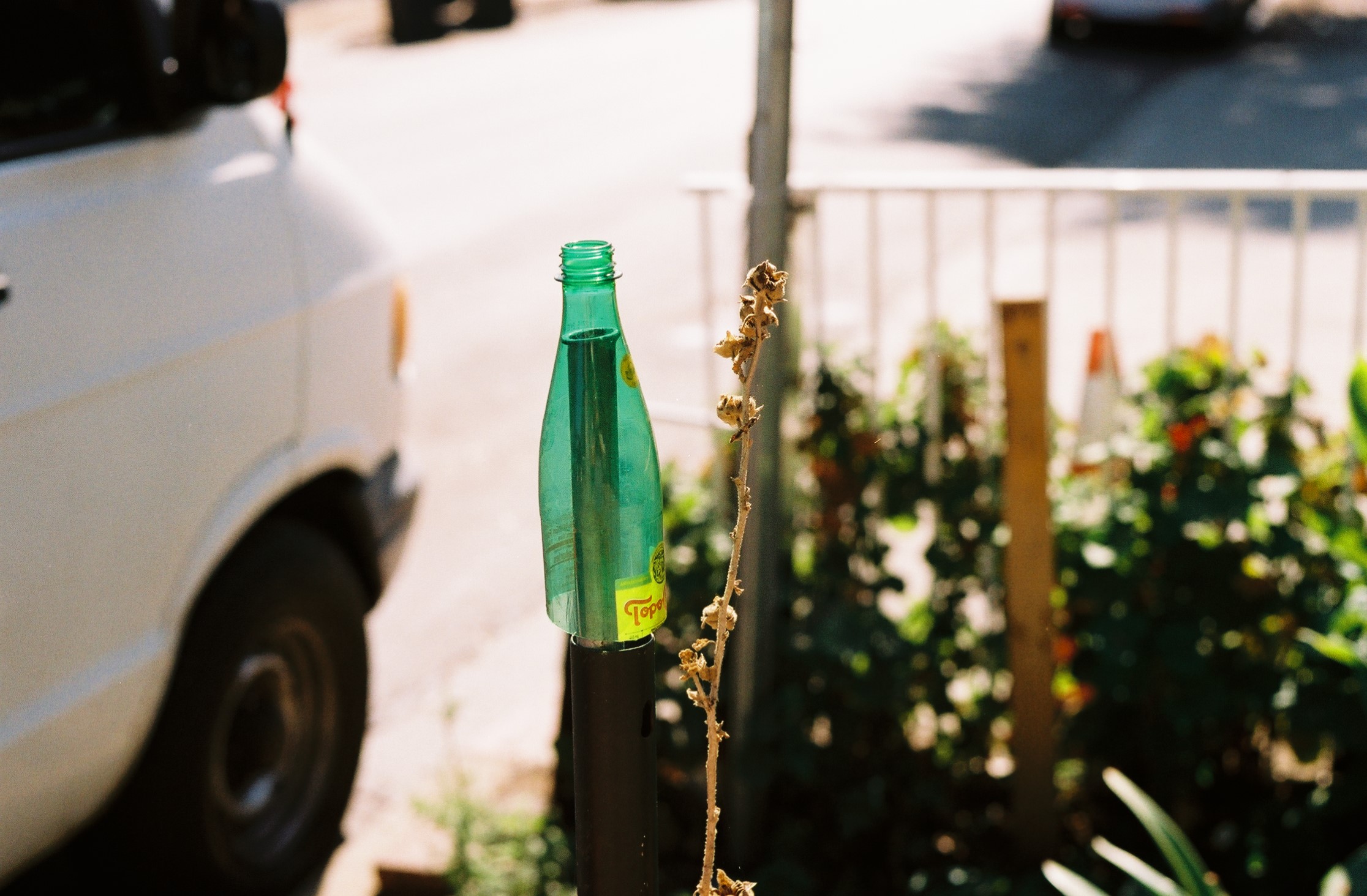 8x10 slide film, e100vs. My first shot. Controlling contrast and calculating exposure for this scene was pretty tricky.Pretty cool to look at in person. I tried cleaning up the color cast and making the scan look like the slide.