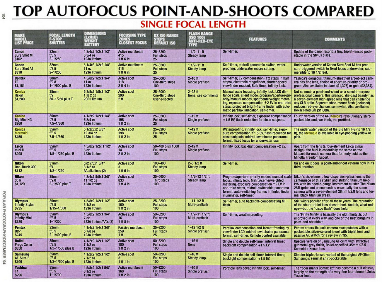 >>4476755>This would have been a 50 dollar camera brand new a decade ago.I don't think so. 10 years ago was 2015. 10 years before THAT was 2005 which was already when manufacturers were halting production of film cameras. Maybe 30 years ago. The camera has an f2.8 glass lens, autofocus and autoexposure, and speeds up to 1/500. PLUS it has manual controls.I'm not saying it's probably great, I'm sure its overall quality isn't as good as something made in the 90s, but it seems to stack up pretty well. The cheapest P&S on this list here is still over $150. I don't think anything like this has ever sold for $50. And something that sold for $169 in 1995 would be easily 3 or 4 hundred today plus there's a market of a few thousand people instead of millions. I don't think I'd buy it but honestly $500 seems like a reasonable price to expect.