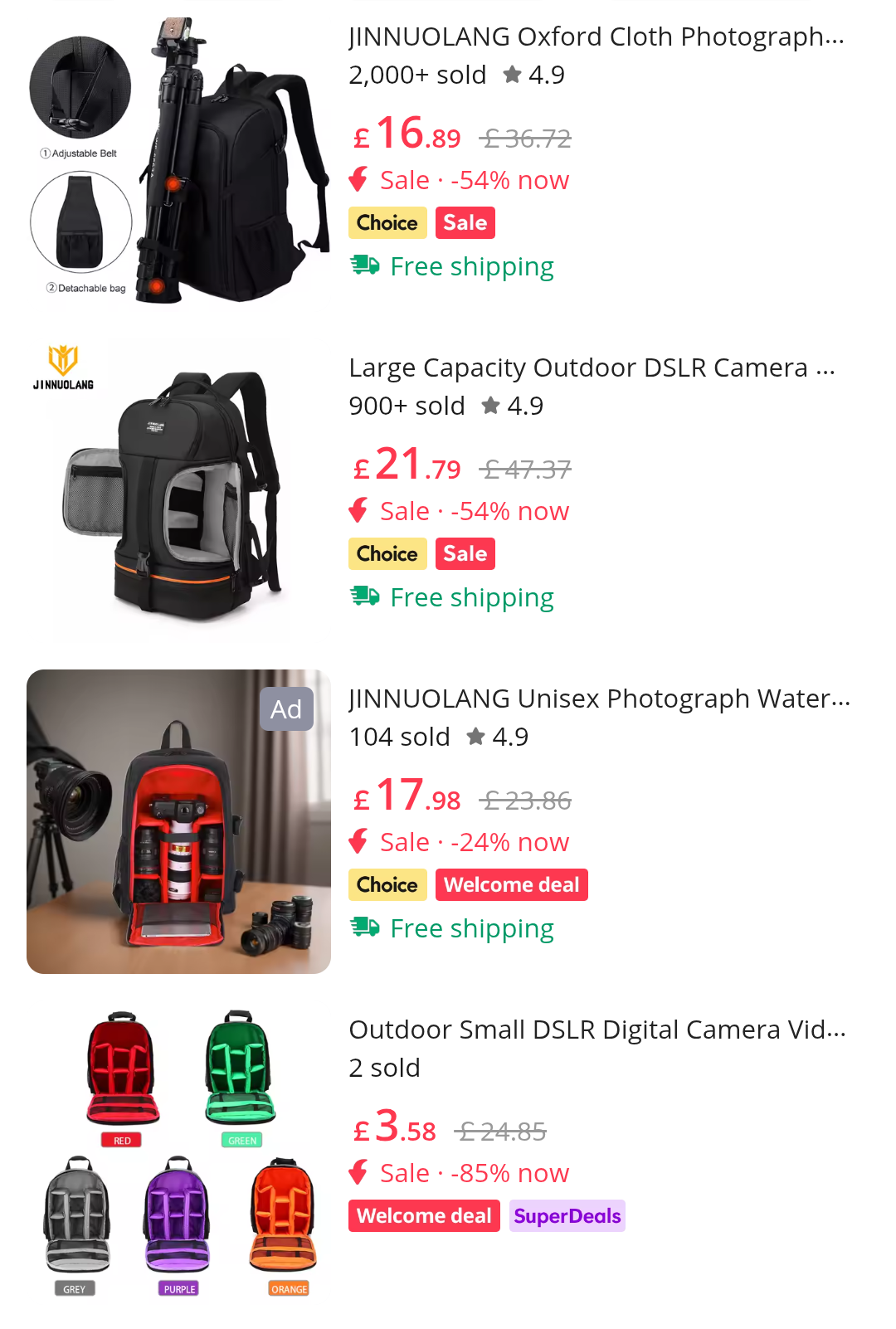>>4484371Go look on china.comCan get smallish 30x20cm camera backpacks with customisable velcro compartment for a fiver and larger 50x 30cm for 20-40$. Larger ones have side straps for tripods and separate compartments for clothes etc and a flat compartment for laptops/notebooks. Also a side flap so you can just pull out your cam, snap a few and put it back easy. I used a smaller one for a couple of years for shoots but didn't need to carry around tripods and flashes as studios have them in situ. It was great, no damage in that time. I just upgraded to a larger one for about 10$ but it's more flimsy than the small one but it was just to test if the larger one meets my needs better and it's still more than good enough for 6-12 months. Will upgrade again at some point to a more rugged +20-50$ as I don't fully trust it for my larger heavier glass for long walks or location days but I can carry around two bodies, 4-5 lenses, flashes and triggers no problem.For those prices you can buy and try a couple then buy the legit k&f concept or other brand ones for +50$ if you don't trust them but they're basically the same. Many of them come with waterproof outer covers but the bag itself is sufficient unless you're walking around in a rainstorm for hours. You should wrap items in plastic in the bag anyway until reaching location and practice lens swaps inside the backpack or plastic bags, especially for dusty or desert environments. IMO sand and dust are much bigger risk/issue to glass, especially zooms with moving parts and shutters/sensors than rainwater.