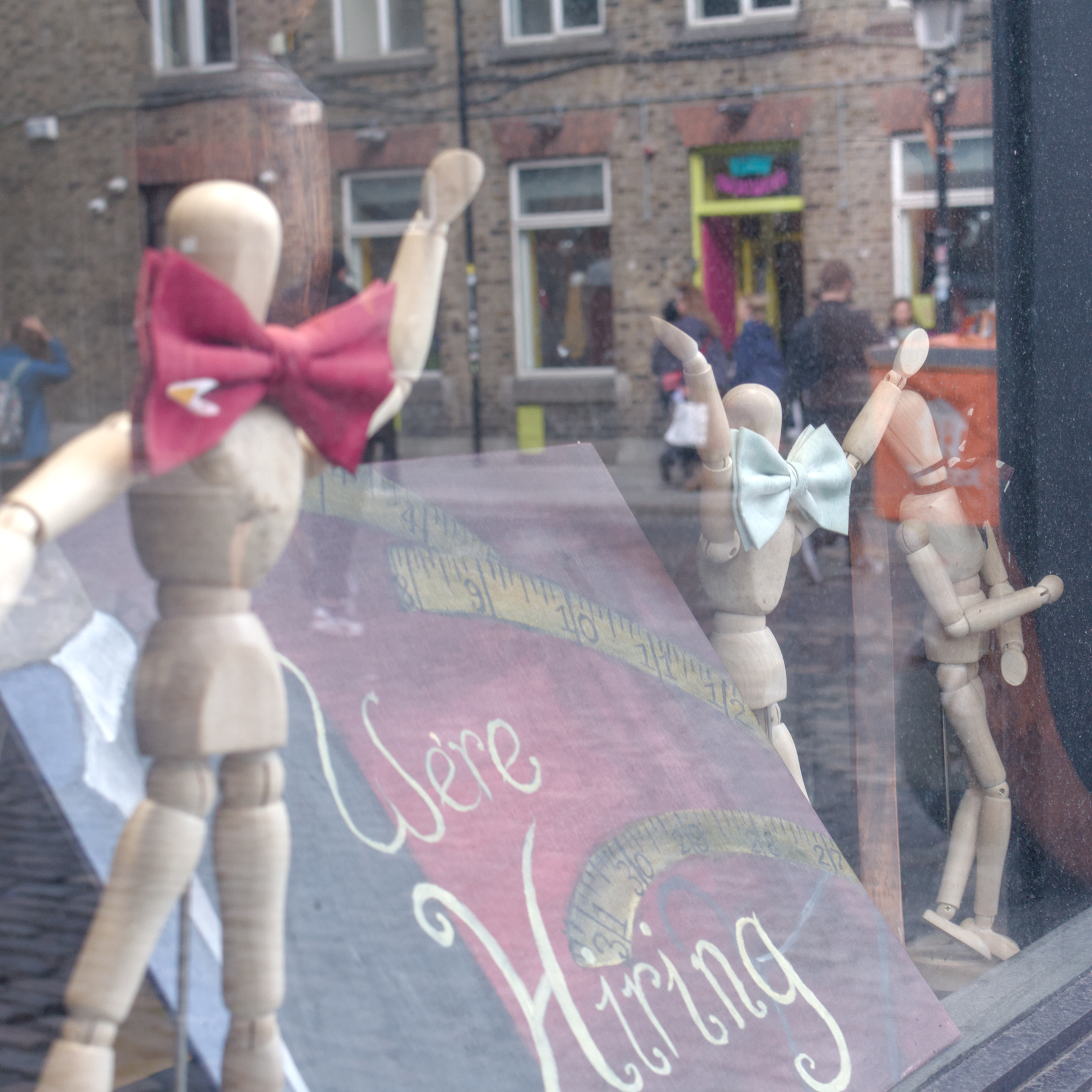 >>4485059happy to do so anon. I like your pic, the poses are fun and sure the window is a bit dirty but I think this is pretty close to being a really really good photo. the reflection here could easily make the story - is someone looking in hoping to get the job? is someone walking away, perhaps rejected? or even just the excitement of the mannequins could contrast with the normalcy of the street outside. give yourself some credit, because (to me, anyway) it seems like you're approaching things from the right perspective and just need to work on some of the finer details. I'll be on the lookout your next shots
