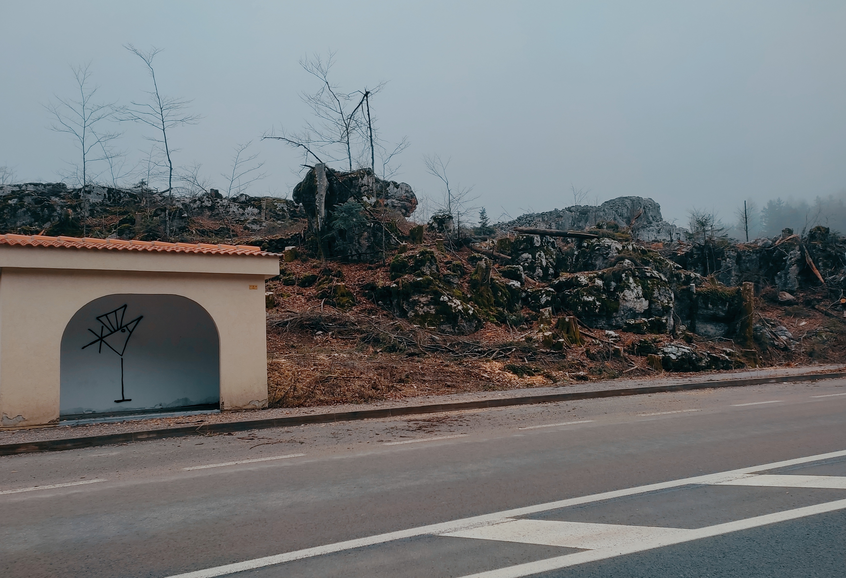 >>4489424honestly didnt evne see thebird grafiti here today, but i think its so perfect and thestar what drew me to this was...i was driving by and it was this really like, scorched earth type lookreally unique, plus the hacienda really basically clean type bus stop there, and then the trees, the scenein the back of the fog over the evergreens which i didnt really get in this shot but...just another unique one i was...seeing different stuff today almostpsychedelic in nature>>4489423a little weirdone, i think heretoo, but, the greenmoss and the turqouisewater, stabbingin the middle there, its just interesting i really likeit
