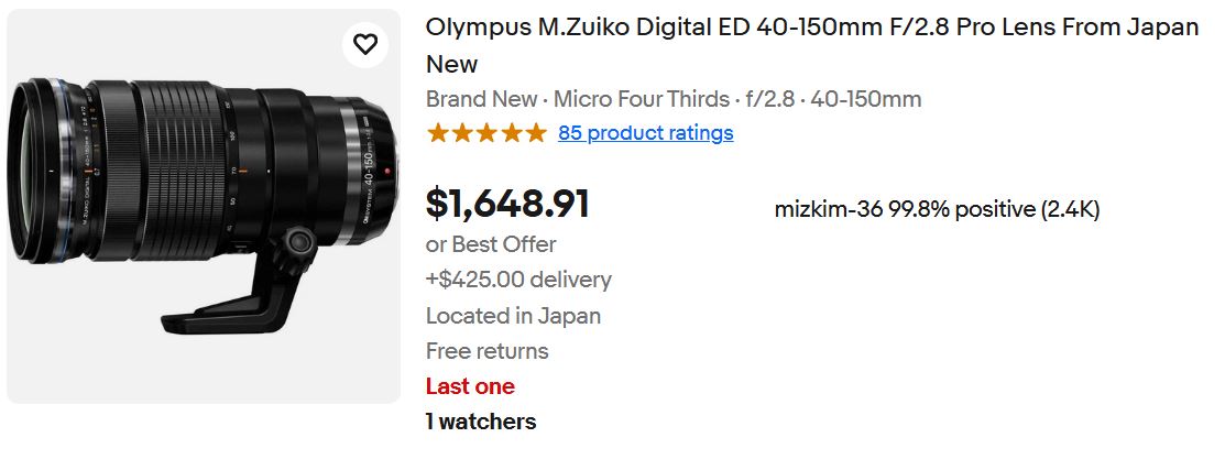>>4492217Fucking this. When will micropeen peen realize they have overpriced lenses?This Olympissed poo poo made in pajeet lens is a 70-200 f/5.6 lens but cost more than a FF equivalent all the while having worst aperture