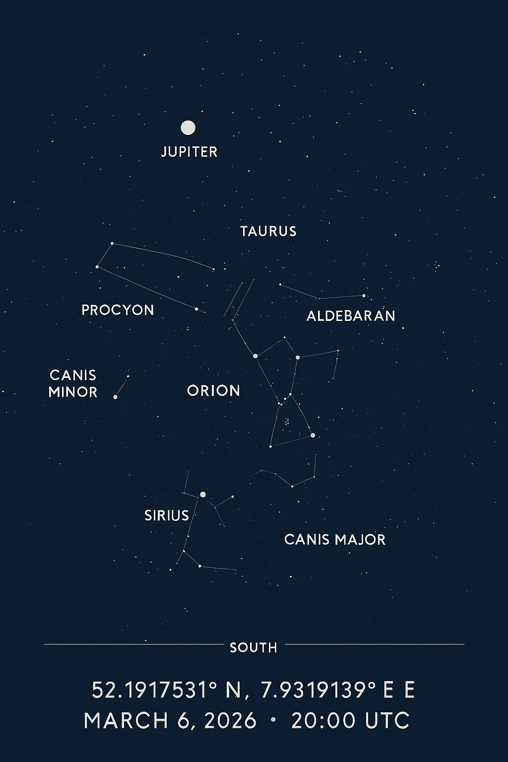 52.19° N, 7.93° E — 6 March 2026 — 21:00 — facing 160°–180° (south).
