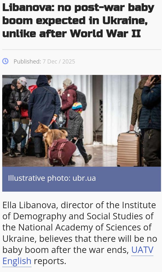 >>523874643>Drag off all the men to be Russian drone targets for nothing to be gained >Women all leave to be whores all over the world >No baby boomWell no shit