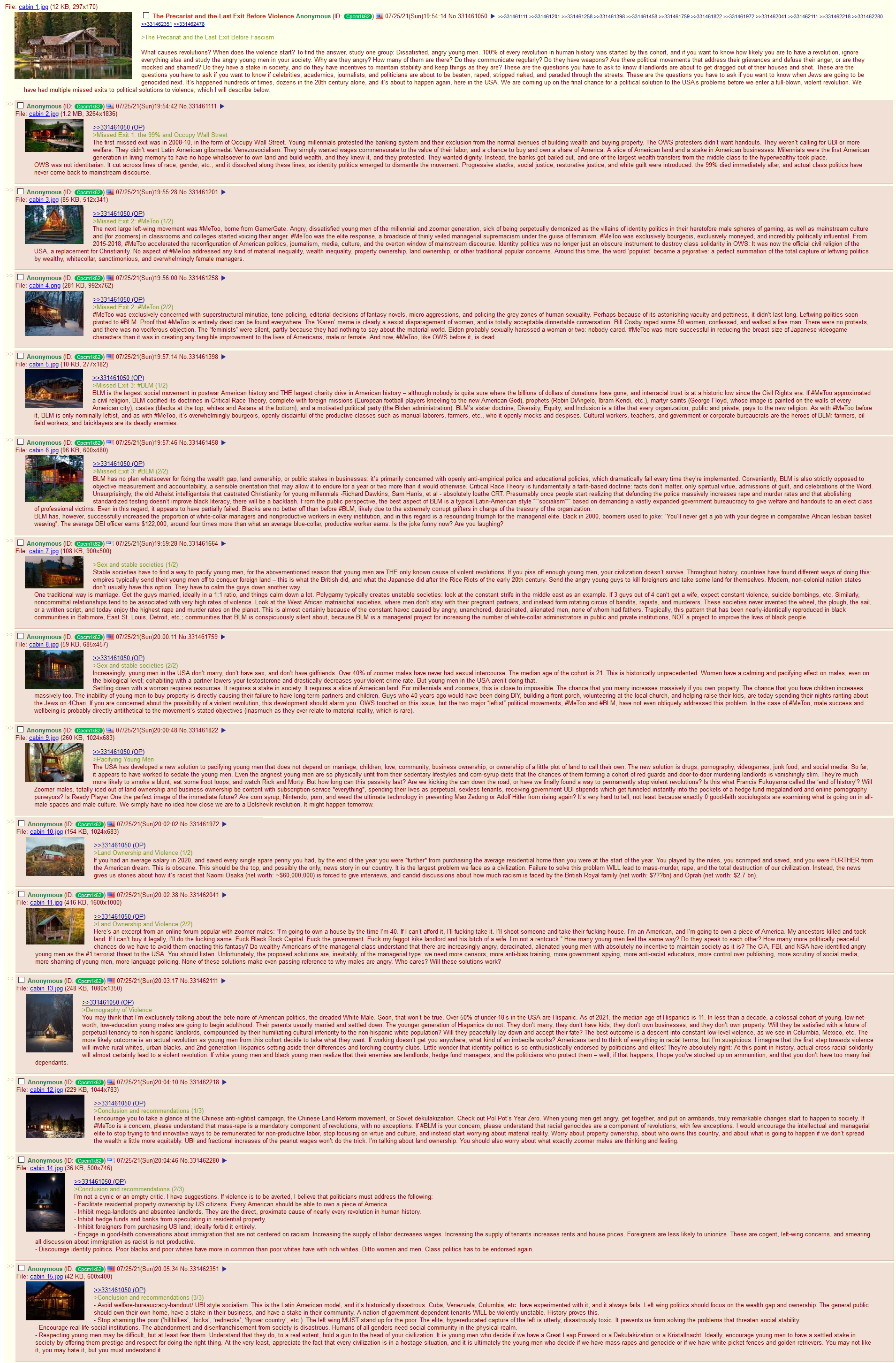 This is not a condemnation of the men. Far from it. They're just following what they've been taught and beaten into. This is a condemnation of the governments that, through social policies, have allowed hypergamy to spread the way it has. It's a condemnation of society teaching white western men to be followers of women. And it's a warning, that for now, this cohort of sexless and childless men still have some youth to cling to and the hope that they can still find some kind of wife-worthy woman. Once they get old enough, though, they'll not be able to fight as well as they used to be able to. But they will become violent enough to disrupt society. The anon who wrote The Last Exit back in 2021 called out this exact issue and scenario - disenfranchised young men who have nothing to look forward to will turn to radical ideas simply because the currenr course will never work for them.