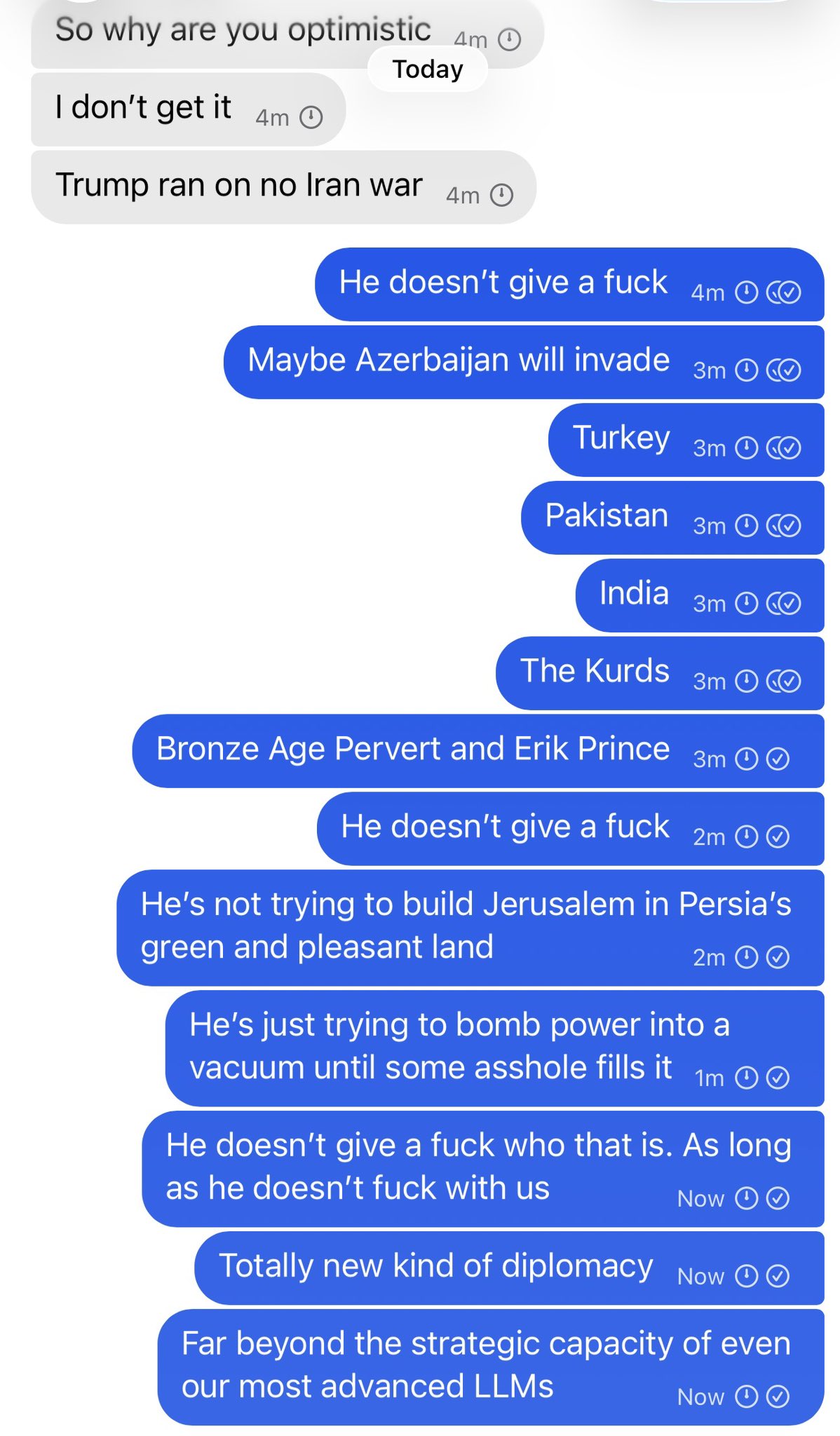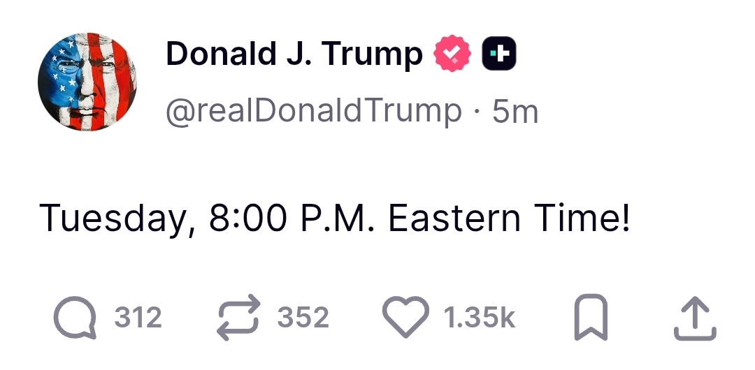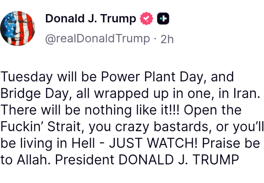 Trump has just changed the 48 hour deadline to an 84 hour deadline. Iran now has until Tuesday 8pm to make a deal or else hell will rain down upon them! Praise be to Allah mashallah my sisters, Trump's wisdom knows no bounds!