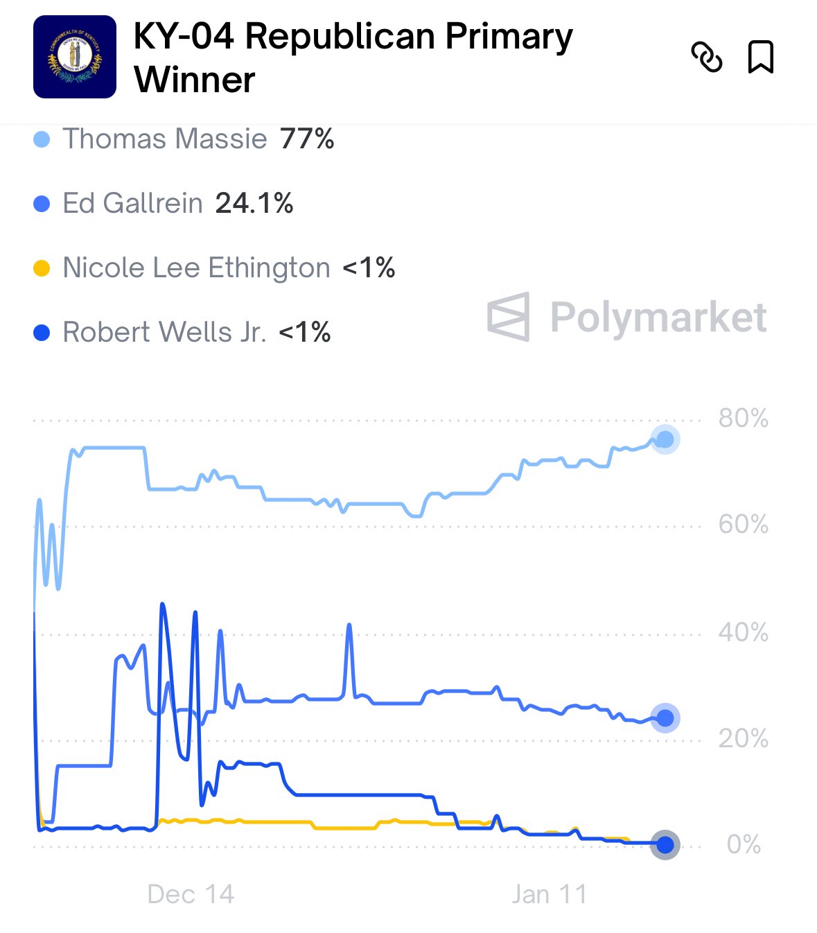 Betting markets show Massie is likely to crush his Trump endorsed primary opponent. What went wrong Trump bros?