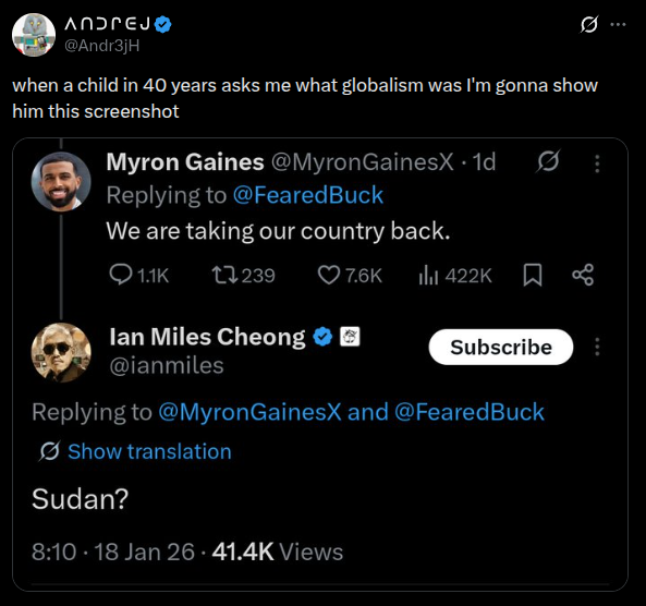 Ian is from Malaysia and has never been to the USA. All he talks about is American politics same as every other shitskin and europoor.