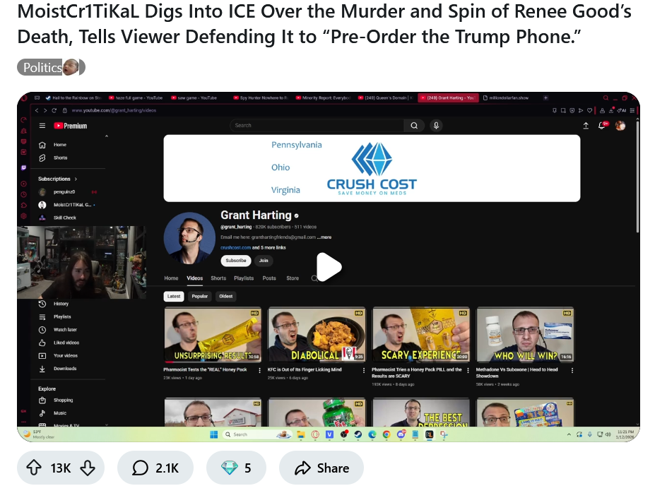 Even the based MoistMang1na hates ICE.