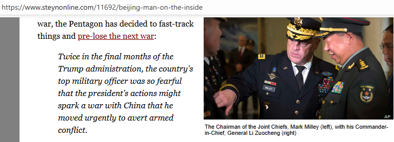>>526527370Leave It to Beaver wasn’t naןve. It was post-traumatic optimism, carefully edited. And when modern commentators invoke it—whether in comment sections or on cable news—they’re not really talking about parenting or manners. They’re talking about how to make a broken era feel golden again.Even if it takes a shock to do it.*-*=[GENERAL MILLEY]=https://www.steynonline.com/11692/beijing-man-on-the-inside```In his article "Beijing's Man on the Inside," Mark Steyn presents a scathing critique of General Mark Milley’s reported conduct during the final months of the Trump administration, framing it as a betrayal of constitutional norms and a symptom of institutional rot.Steyn argues that General Milley’s alleged "secret phone calls" to General Li Zuocheng represent a breakdown of the democratic order. He asserts that by promising to alert a foreign adversary of potential U.S. military action, Milley effectively removed the military from the control of elected leadership.Comment too long. Click here to view the full text.
