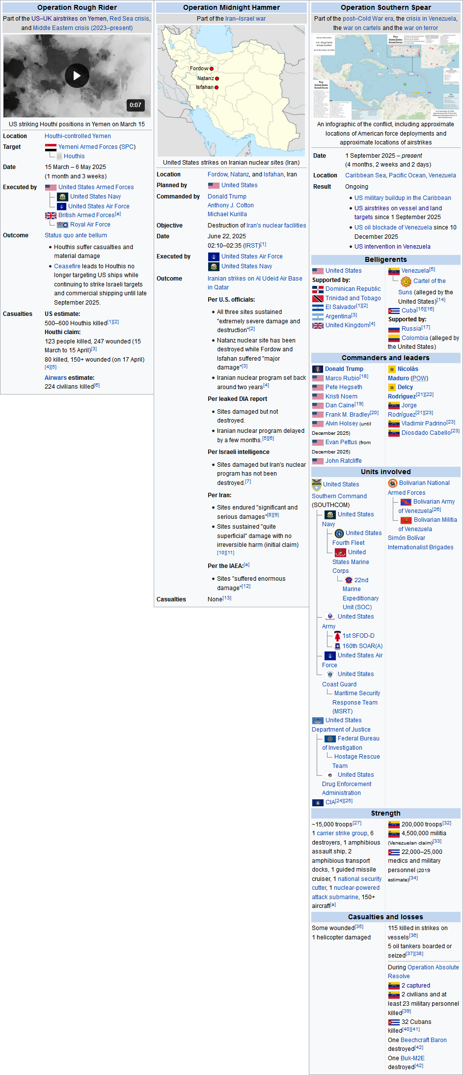 By my count it's been two; Operation Midnight Hammer (Iran) and Operation Southern Spear (fishermen + Venezuela), both without Congressional approval violating the War Powers Resolution (WPR)Operation Rough Rider was a dramatic escalation of Biden's war on the Houthis (Operations Poseidon Archer & Pandora Throttle), but he didn't technically *start* it. Biden started it (without Congressional approval as well) while Trump escalated it and began explicitly targeting civilian sites, which is bad, but you can't say he "started" it.So by my count that's two wars started in one year, both violating the WPR. Am I missing any?inb4>Those aren't real wars!They are under the definition of war used in the War Powers Resolution.