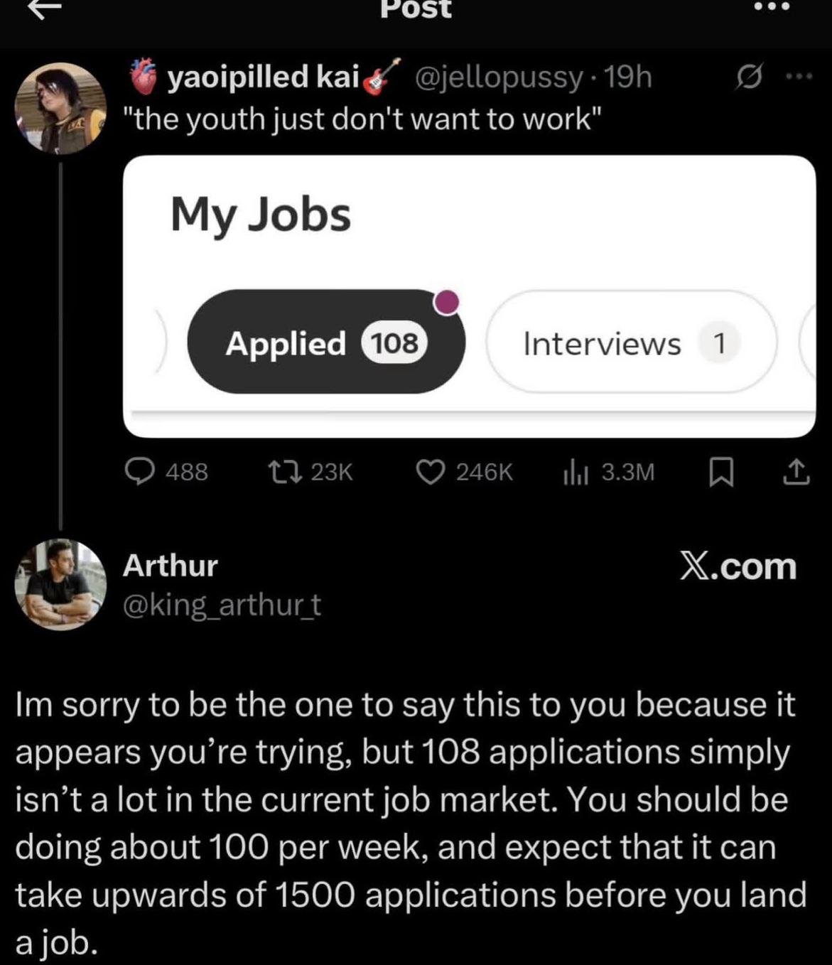 I worked hard in high school. I kept my nose clean, didn't do any drugs, get a single detention, or break the law. I studied, participated in extracurriculars, etc.Then I went to a well-regarded college. I worked hard, got a non-meme stem degree and got great grades. Then I graduated and moved back home to one of the biggest tech hubs in the country and moved back in with my folks cuz I can't afford rent. Then I apply to hundreds of jobs related to my major and if I even get an email back, it's "Thank you for applying, unfortunately". Proceed to apply to wagecuck jobs and can't even get a fucking email back. Even my buddies fast food restaurant would have to pay $6k in taxes to hire me part-time. I did everything they fucking told me. Now I'm a 24-year-old broke loser living with my parents. Is this the American dream? Is this what I had to look forward to?