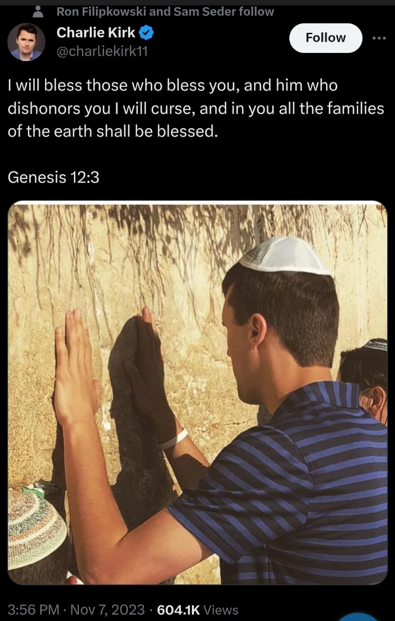 Ah yes, the latest flat earth well poisoning grift. Oh yeah, Israel killed Kirk. And if you repeat that to anyone of average intelligence then you'll be known as an idiot from that day forward