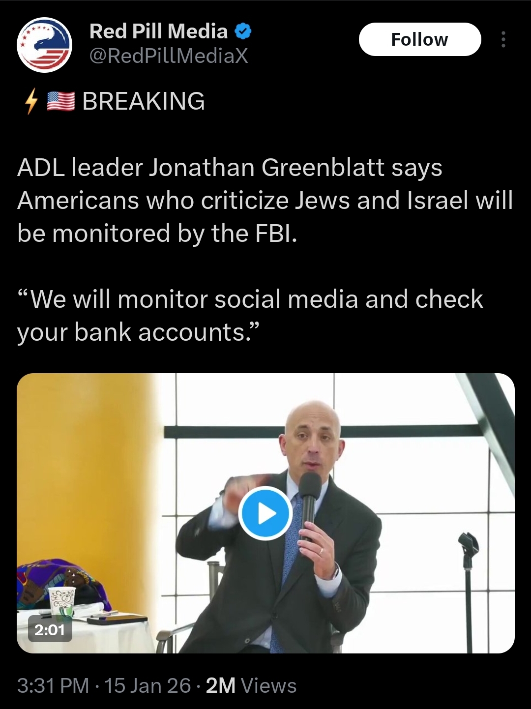 ADL says its still working with the FBI despite Kash Patel saying they cut ties with them and that they are "checking the bank accounts" of antisemites.