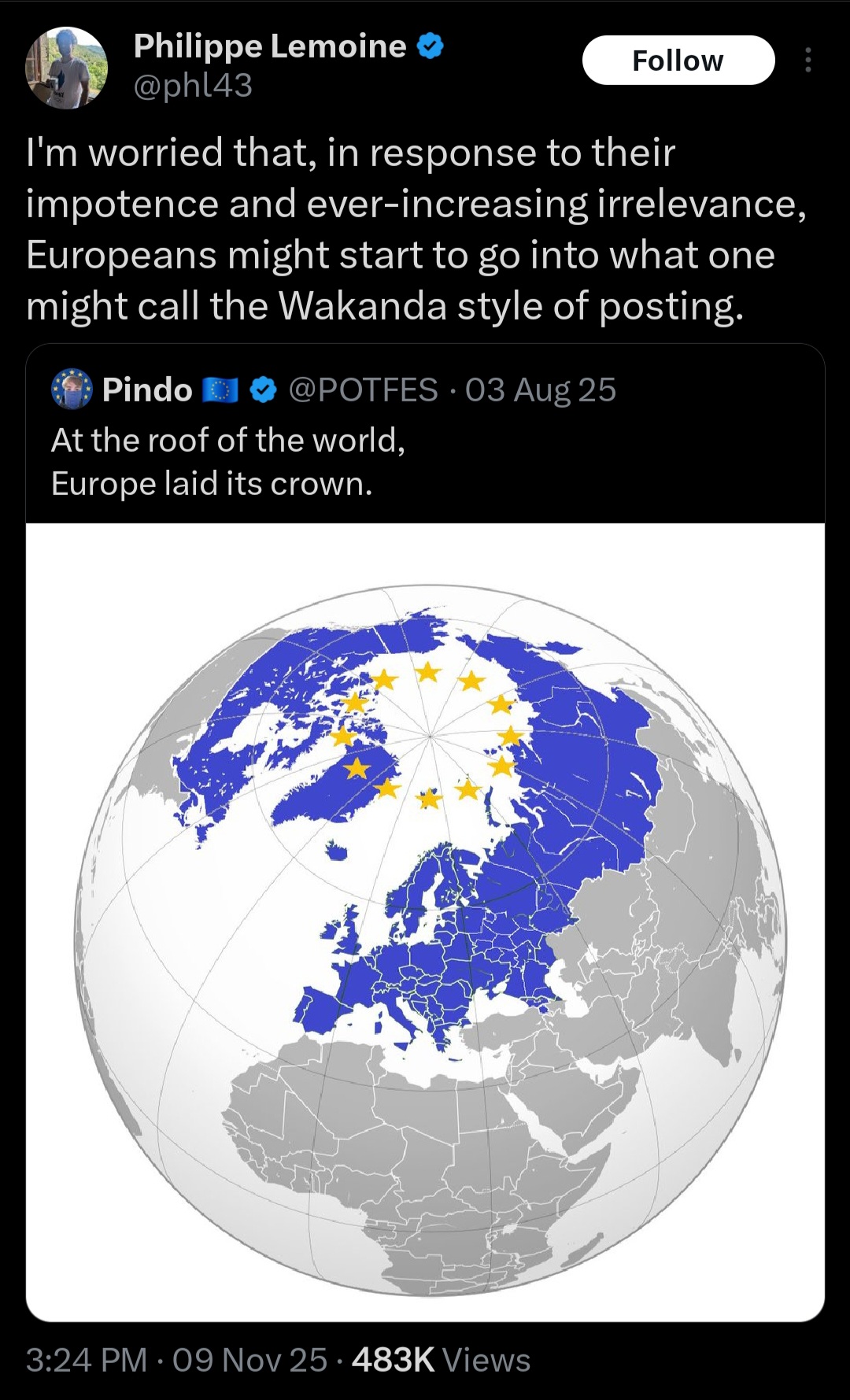 America, Canada, Australia, New Zealand and South Africa are all just colonies of Europe and all of Latin America too. The unfortunate reality is that the entirety of European civilization is falling to pieces rapidly due to the stupidity of liberalism. The ideology most of us have been immersed in for three centuries. In liberalism there is no real head of state and the government does not really have the power to protect the nation. Instead the mob decides everything. Even Vladimir Putin is held hostage various ethnic minorities. If the European Union was to transition into some sort of neofudal fascist, that might be the only hope for the white race because then whoever is at the top would actually have the power to deal with the migrant crisis. Right now due to the structure of democracy and liberalism, no one can reverse this damage.