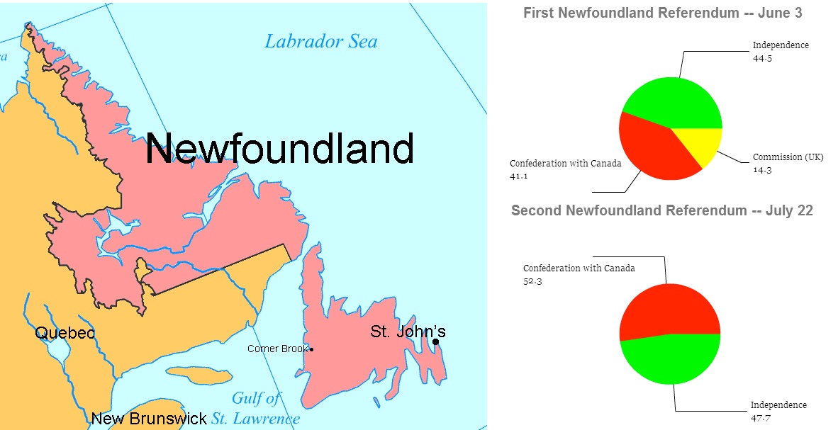 In 1948, the people of the Dominion of Newfoundland decided whether to keep the British rule, join Canada or be independent.Seeking a union with the United States was not a referendum option, despite the idea having some currency amongst locals. With the Cold War looming, U.S. interests in Newfoundland were centred primarily on its strategic importance to the defence of North America. The Americans' ability to maintain bases on the island satisfied those concerns — after receiving assurances that the Canadian government would honour the leases for bases on Newfoundland, the U.S. State Department had no further interest in the political future of Newfoundland. President Harry S. Truman's administration had little incentive to pursue annexation. With respect to foreign policy, such a territorial ambition would have only served to antagonize two key allies. With respect to domestic policy, the administration would not likely have been able to convince Congress to offer statehood to Newfoundland due to its small population and geographical isolation from the then-48 existing states, and would not likely have been able to convince Newfoundlanders to accept territorial status as an alternative to admission as a U.S. state.