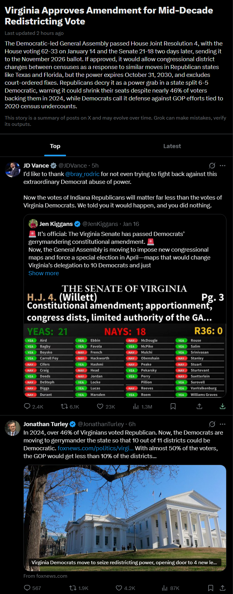 Why is failed president upset?The faggot thinks its okay to redistrict texas, and here virginia is letting the people decide