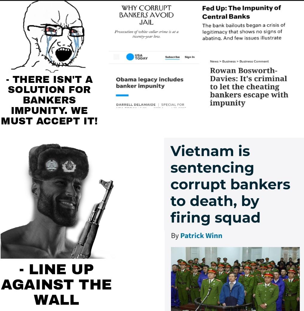 Why can’t we just execute corrupt bankers, capitalists, and politicians when they scam and abuse the system?